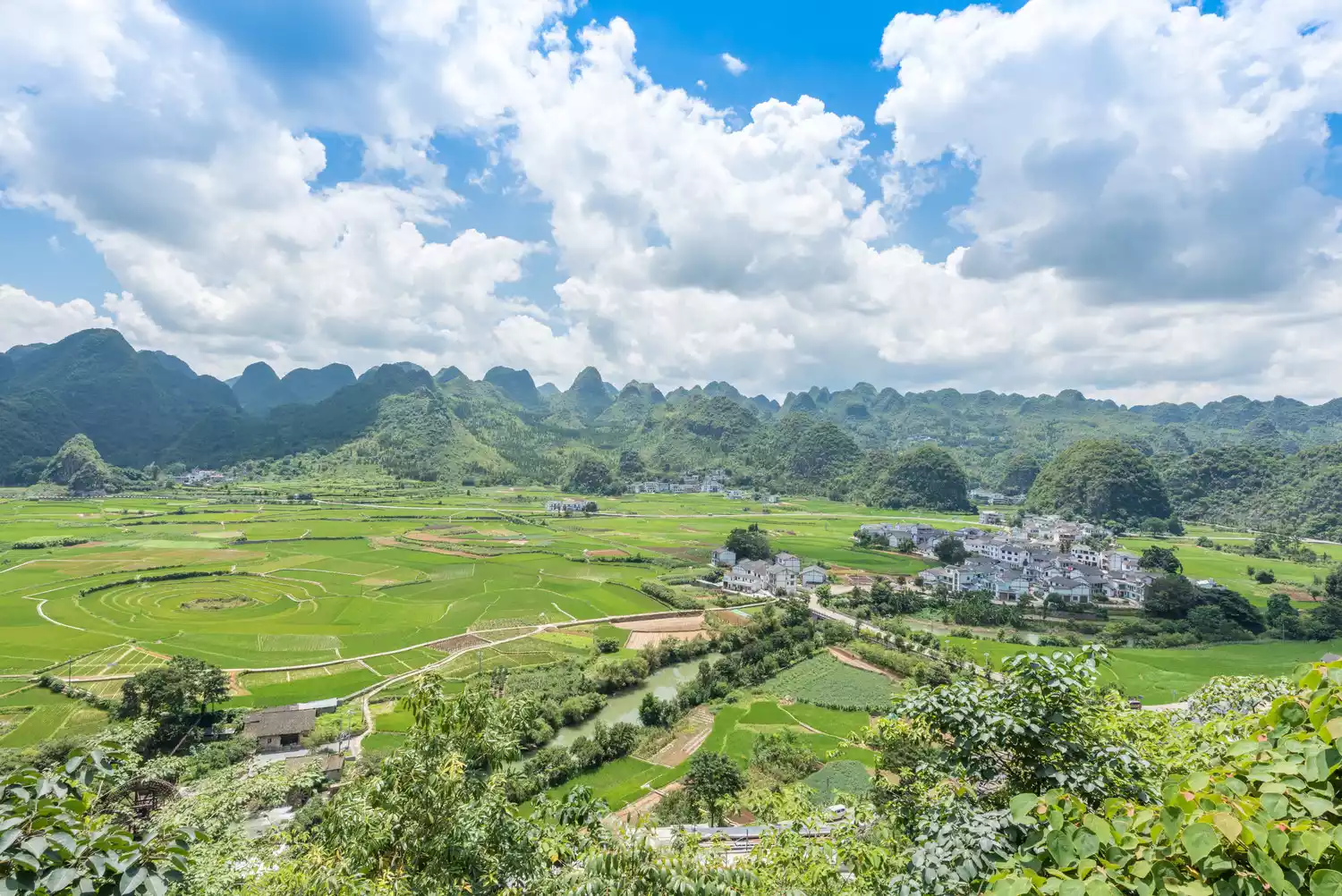 Under the Wanfeng Forest, natural villages such as Nahui Village and Louna Village are scattered among them. The flat countryside connects the mountains and villages into a whole. Riding on the country roads and passing through the villages, you can see green mountains when you look up and rice fields when you look down. How can you describe the pleasantness?