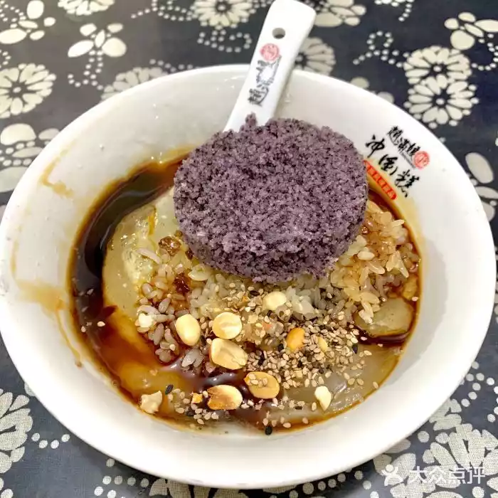 For those who love sweets, Chong Chong Cake is definitely not to be missed. Xingyi Zhao Manniang Chong Chong Cake is made of colorful glutinous rice with rose sugar, sesame, peanuts, brown sugar, water chestnut powder and other flavors. It is mixed with boiling water and then eaten. It is soft, sticky, sweet and not greasy.