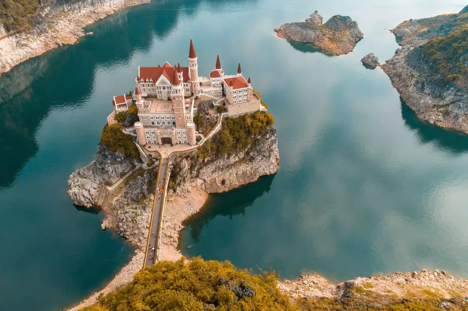 Wanfeng Lake Scenic Area is adjacent to Wanfenglin, approximately 20 kilometers away, or a 25-minute drive. The lake boasts over 80 islands and a water area of 816 square kilometers, equivalent to three times the size of Erhai Lake in Dali. On an isolated island within Wanfeng Lake stands Jilong Castle, a European-style castle that serves as a hotel resort, making it easy to capture stunning photos from a distance.