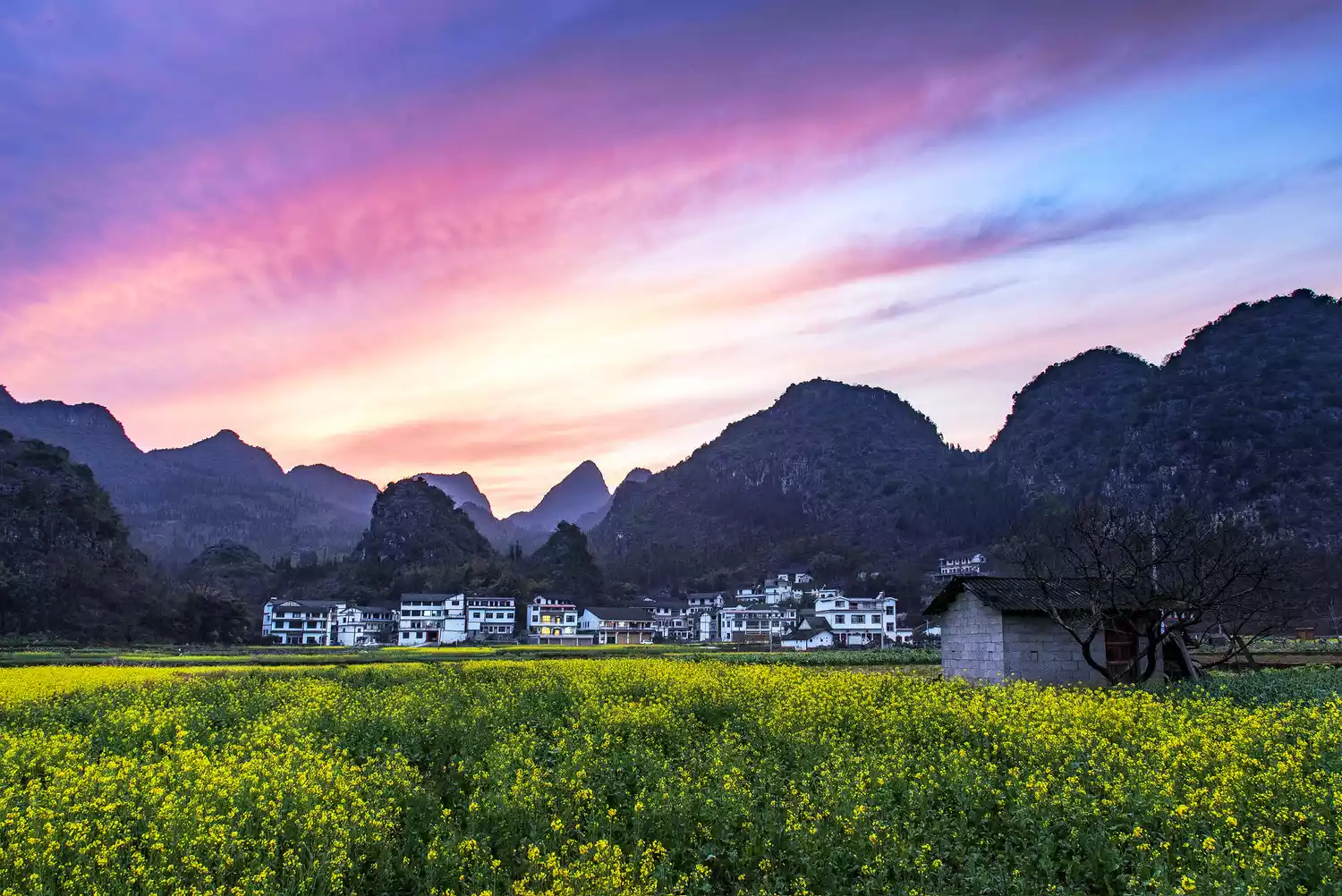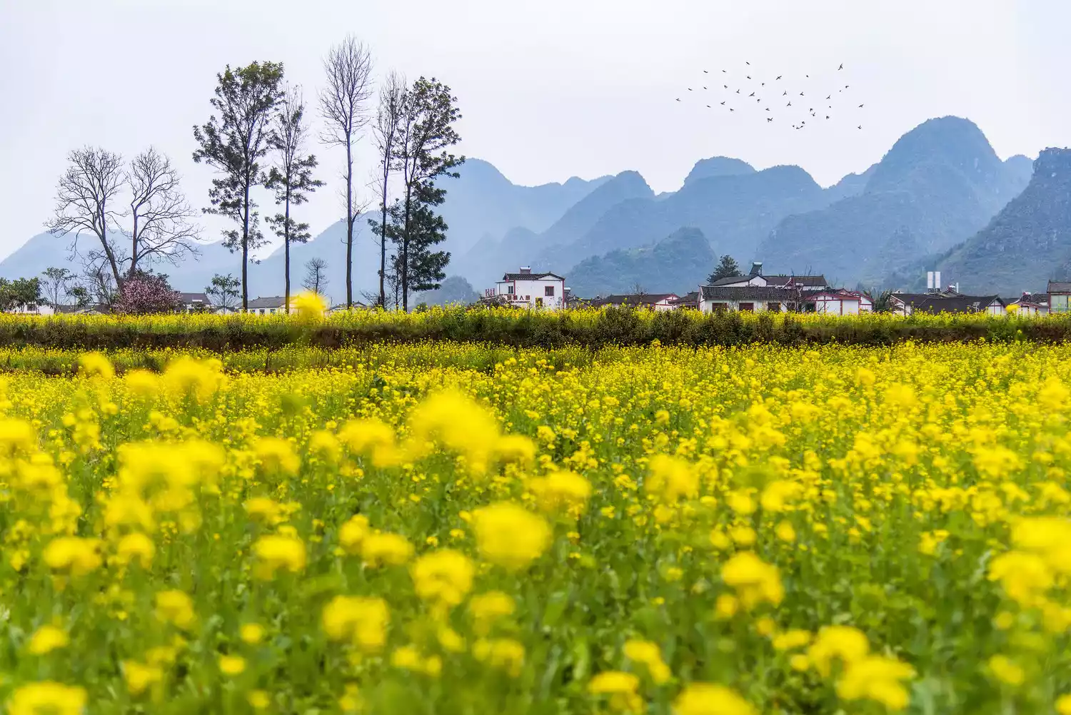 Luoping boasts approximately 800,000 mu (approximately 1,000 acres) of rapeseed fields, which bloom in full bloom from February to March each year. Between sunrise and sunset, the interplay of light and shadow creates a vibrant golden scene, transforming Luoping into a fairytale world. The Wanfenglin Scenic Area is approximately 100 kilometers away, a one-hour drive.