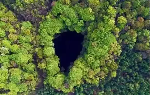 Quanziya Tiankeng in Sanyuan, Zhenba, is ranked fifth in the world in terms of size, with a massive 520-meter diameter and a depth of 340 meters. It is a true super tiankeng, and is also known for its unique heart-shaped entrance.