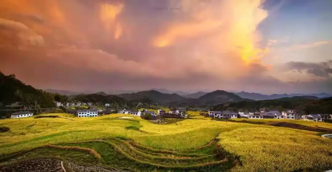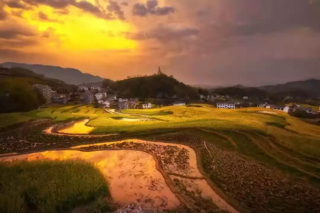 The terraced fields nestled against the mountain and beside the water were crisscrossed with paths and smooth outlines. At the foot of the mountain lay the ancient town of Xuanwo, with its interlaced wooden houses and curling smoke from cooking fires.