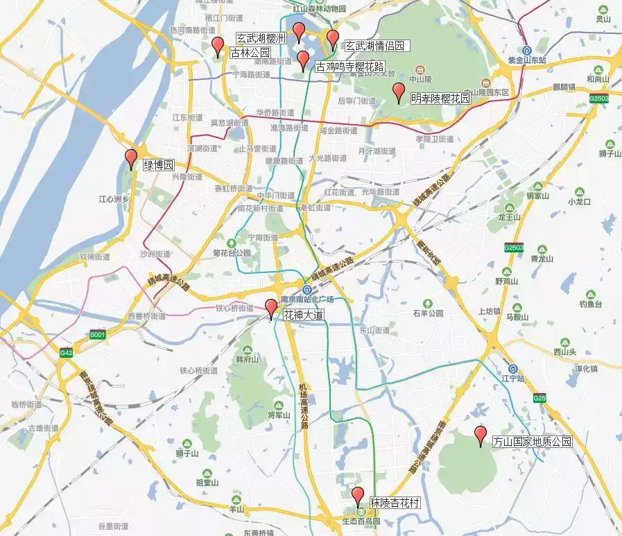 Spring arrives, ushering in the season of flowers. March is still early spring, and flowers like cherry blossoms, hydrangeas, magnolias, and rapeseed blossoms typically bloom at this time. These flowers generally bloom until April (before the Qingming Festival), with hydrangeas lasting until mid-April, so there's no need to rush; you can still see them by early April. In early May, lavender, roses, peach blossoms, and other flowers bloom. April is truly beautiful, and nothing is more beautiful than a hundred flowers in bloom. Here's a map of Nanjing's flower viewing spots—picking a weekend to check them out!