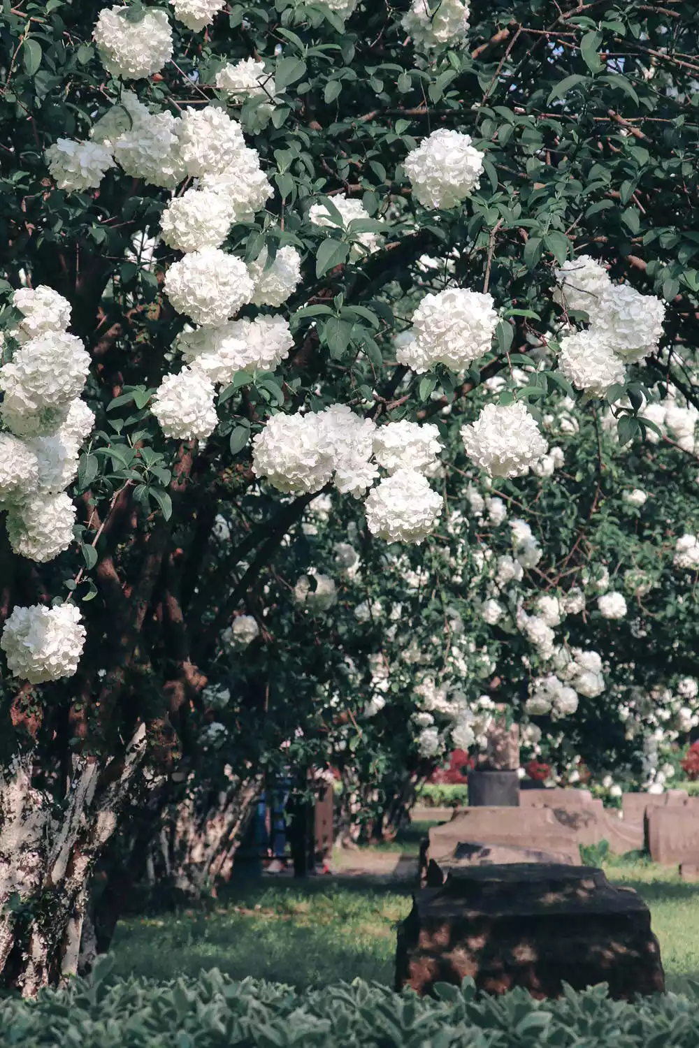 Hydrangeas have been cultivated in China for a long time, appearing in Jiangnan gardens built during the Ming and Qing dynasties. In early April, white hydrangea trees burst into stunning bloom, while after May, colorful hydrangea shrubs ("Endless Summer") begin to blanket the spring landscape and continue into summer. Parks built in the early 20th century also featured hydrangeas. Nanjing, a city steeped in the flavor of the Republican era, is no exception.