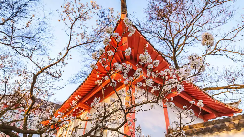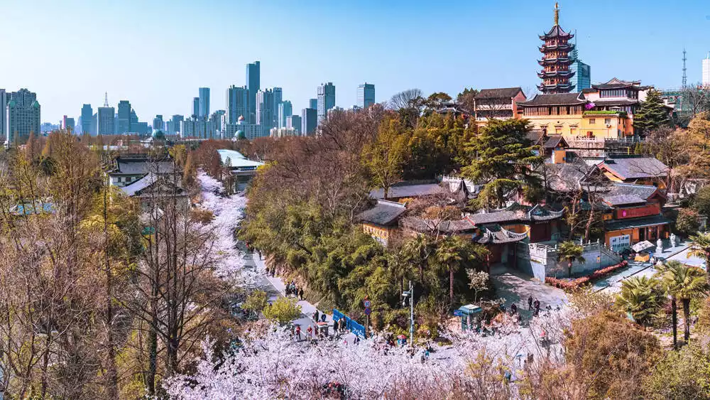 Who says Nanjing only has summer and winter? Spring is beautiful too. Look, the cherry blossoms at Jiming Temple are smiling at you. Isn't that captivating? Add spring blossom viewing to your Nanjing travel list.