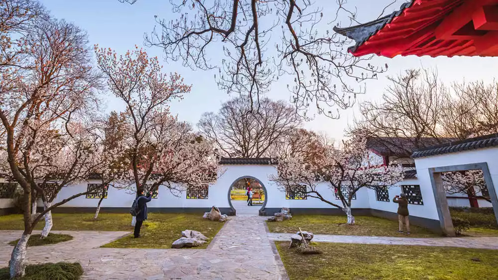 After the lively Spring Festival, Nanjing’s first flower-viewing event is here: go to Plum Blossom Hill at the Ming Xiaoling Mausoleum to look for plum blossoms. Plum blossoms of various colors are in full bloom all over the hill, complementing the 600-year-old Xiaoling Mausoleum and are beautiful beyond words. The fragrance of plum blossoms lingers for a month. March is coming, heralding the official arrival of spring in Nanjing, with hundreds of flowers quietly blooming.