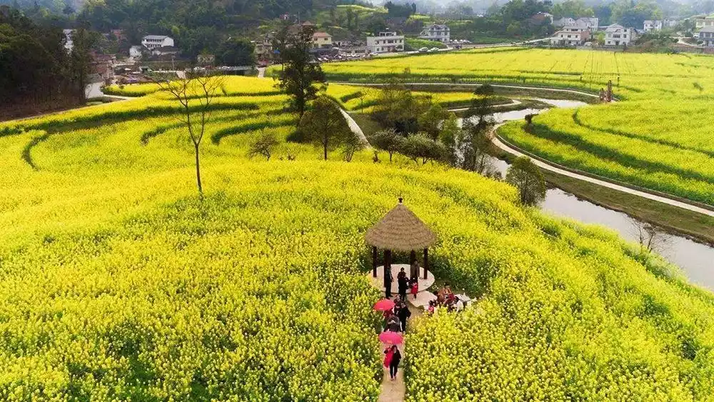 This classic route is one of the most popular annual rapeseed blossom viewing destinations. Not only does it boast 1.12 million mu (approximately 1.12 million acres) of blooming rapeseed blossoms, it's also home to the wild crested ibis, the "Gem of the East." Every mid-March, countless spectators from all corners of the country flock to this vast basin, armed with all manner of equipment, to experience the unique beauty of Yang County.