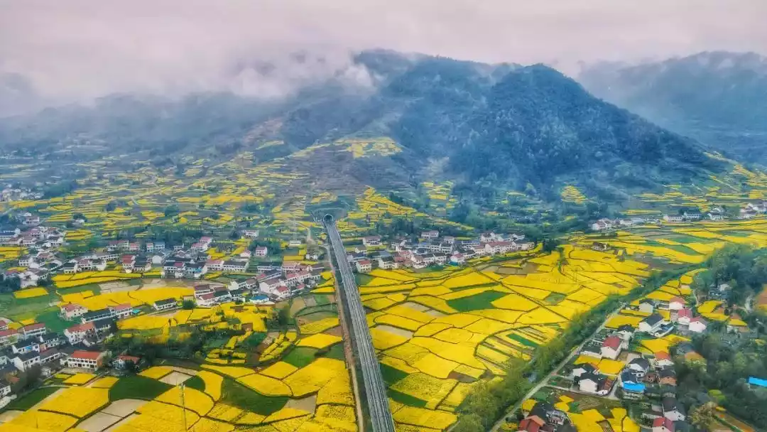 The southern Shaanxi region, backed by the Qinling Mountains to the north and the Bashan Mountains to the south, has natural geographical advantages, making the Hanzhong Basin a golden color from March to April.