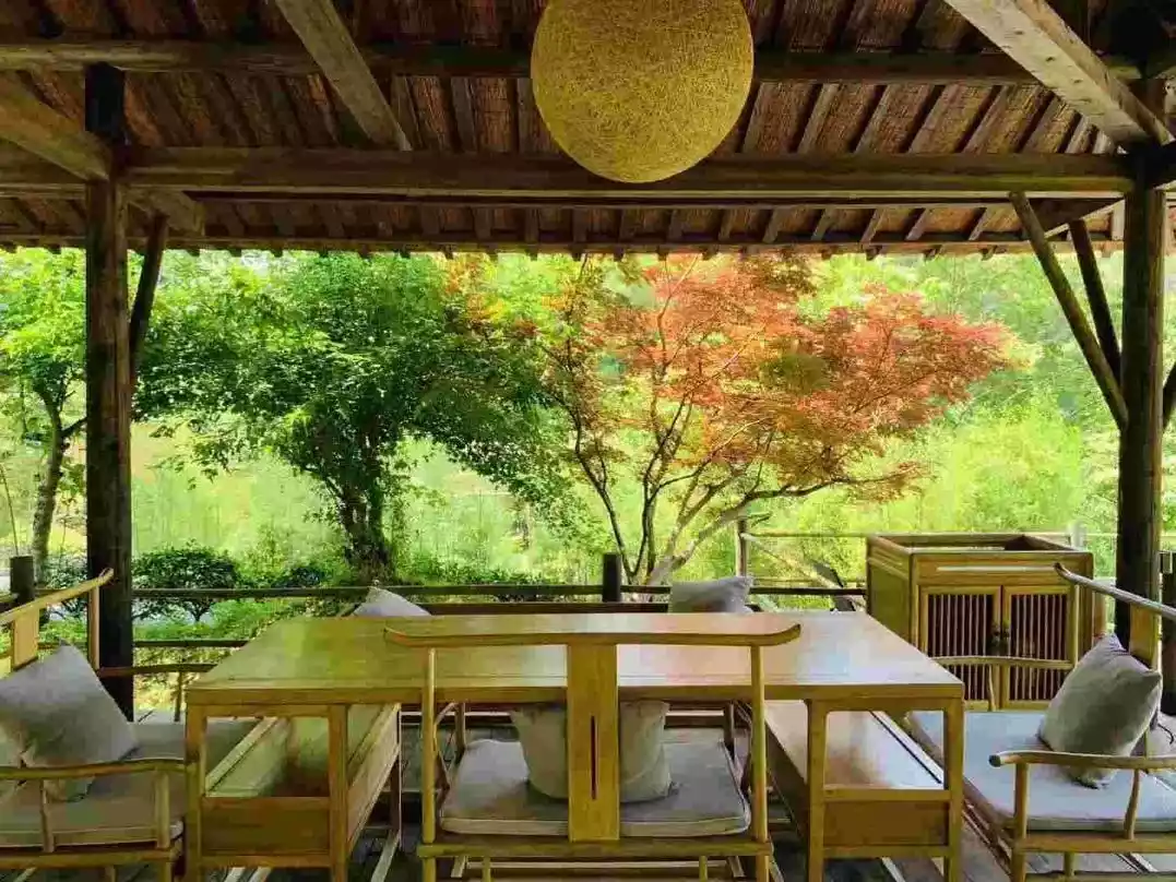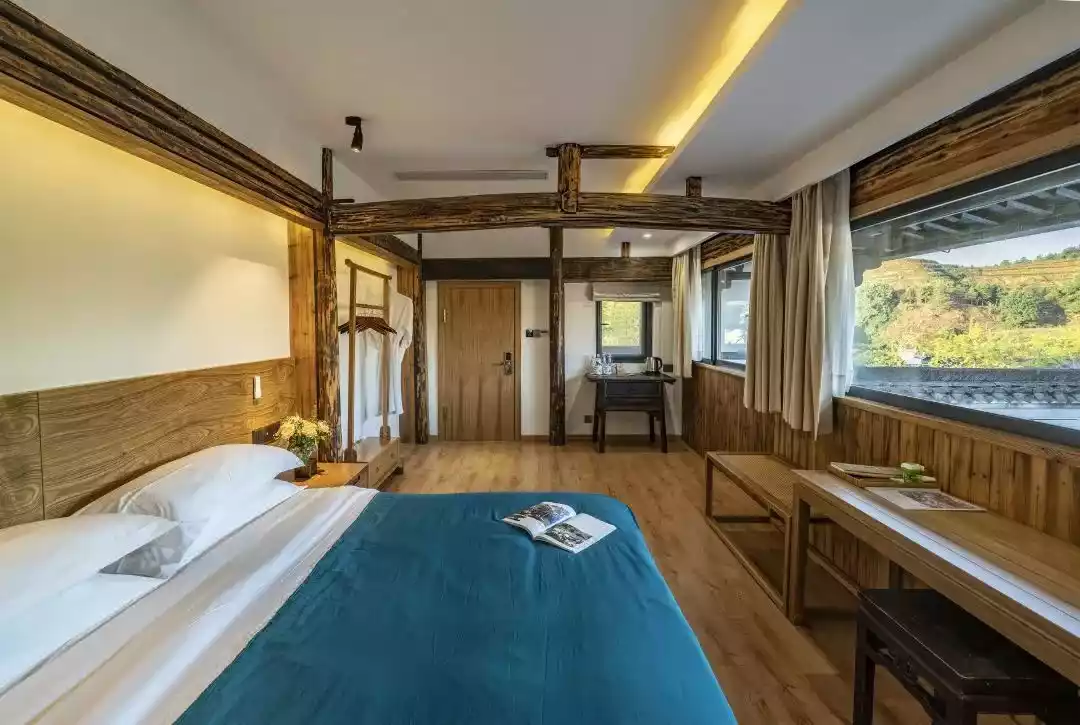 Stay at Wuyuan Houtang Manor, which covers a total area of more than 400 acres. The manor has a tea garden, an equestrian club, a college, and a Huizhou garden-style holiday house, with famous ancient trees, waterside pavilions and terraces hidden among them.