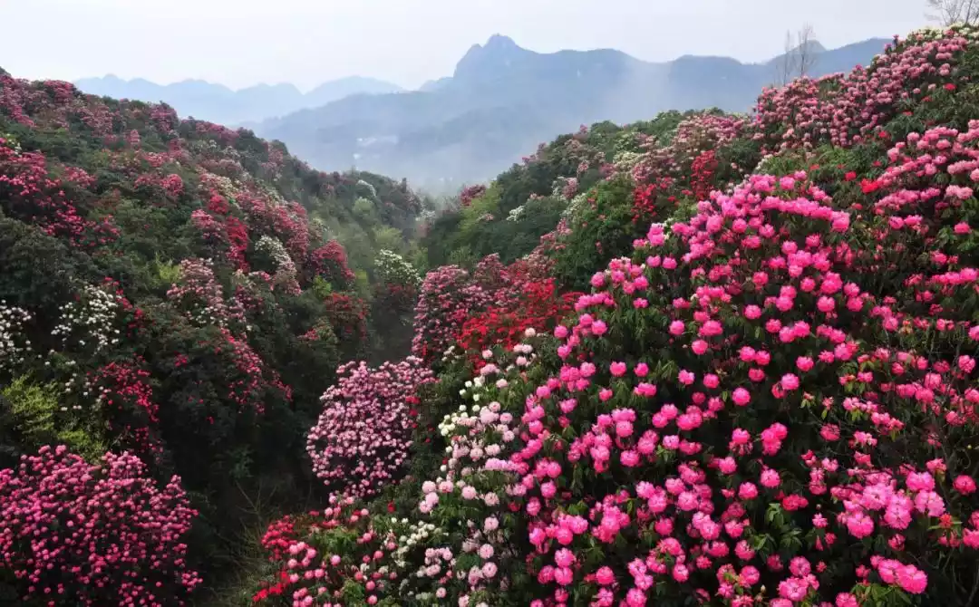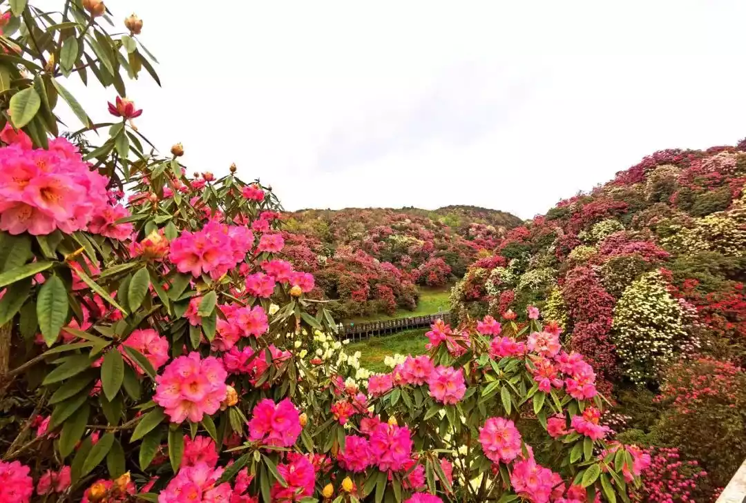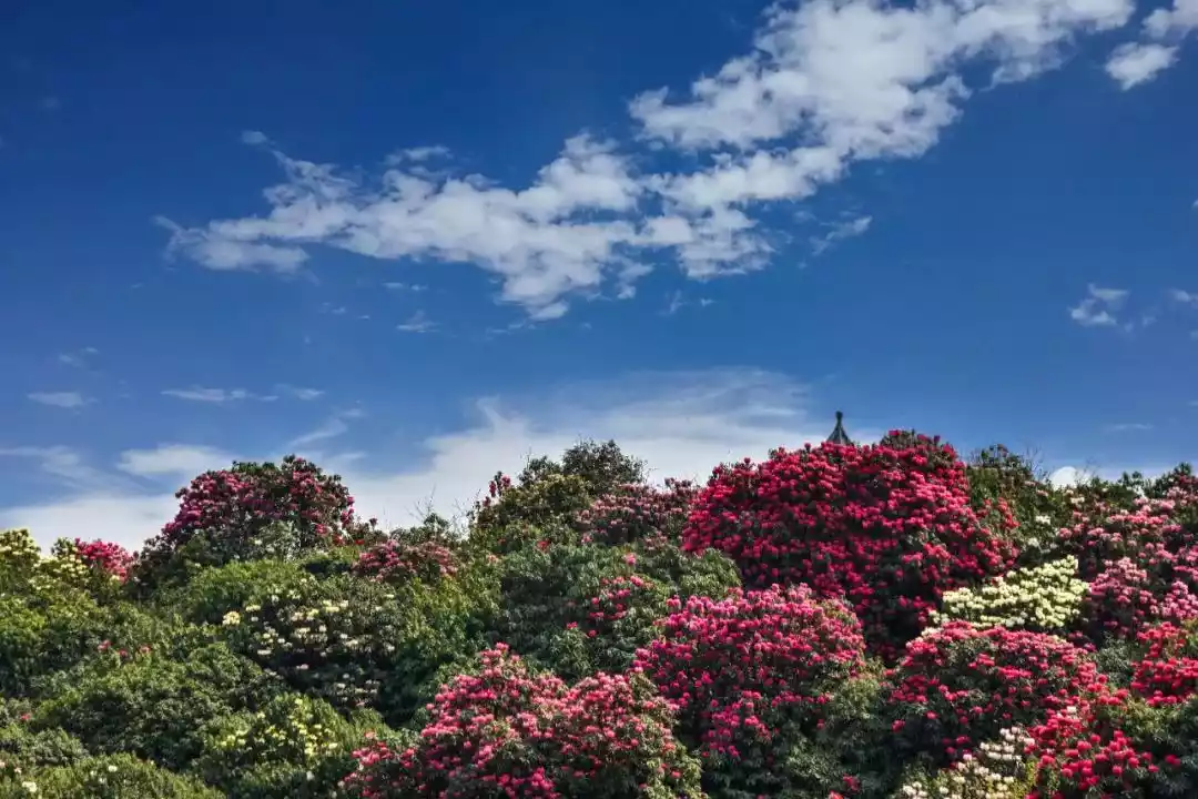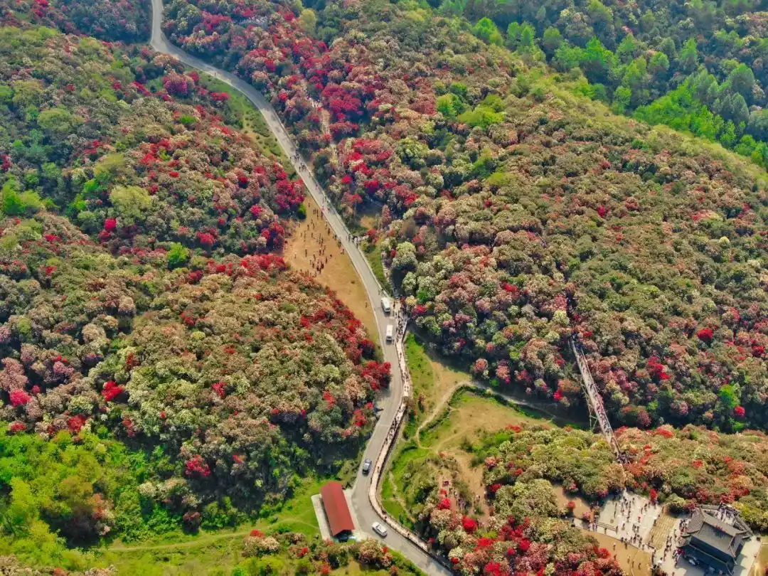Here you can enjoy the pure spring air and gentle breeze. In early April, the azalea buds gently open, welcoming a sea of flowers all over the mountain.