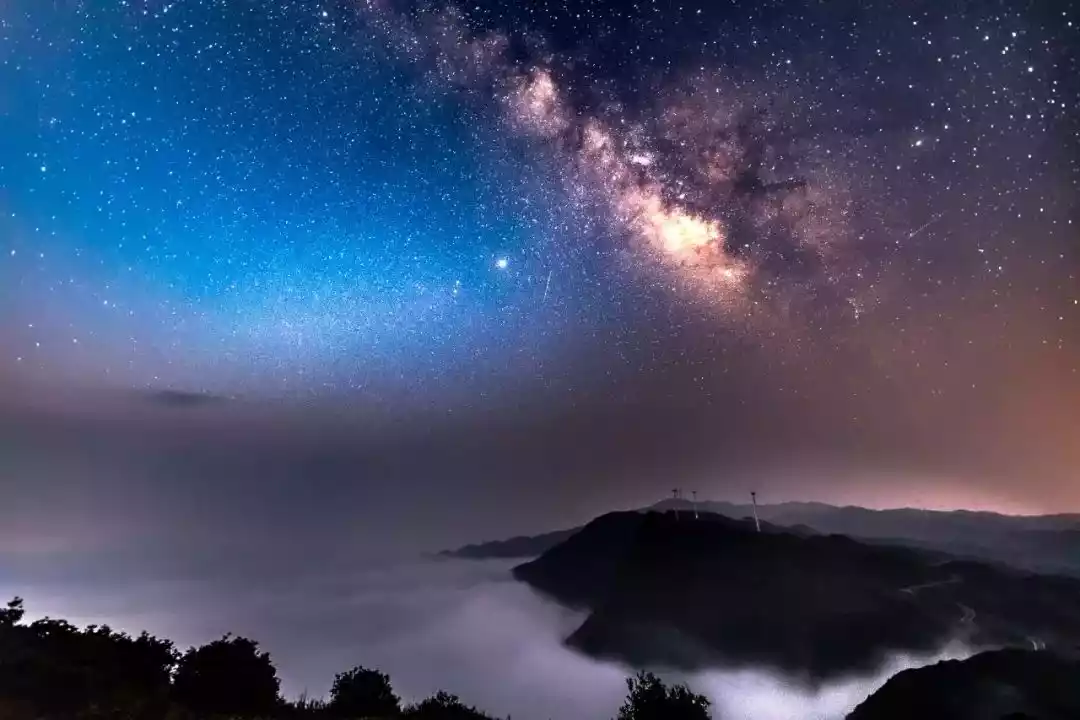 When night falls completely, the stars in the sky and the rhododendrons echo each other in the distance. This is a pure scene that is hard to see in the city.