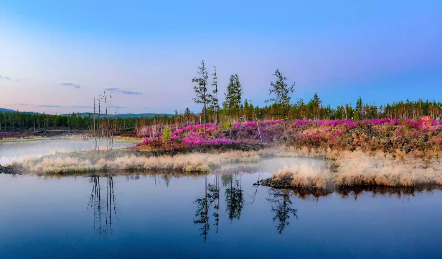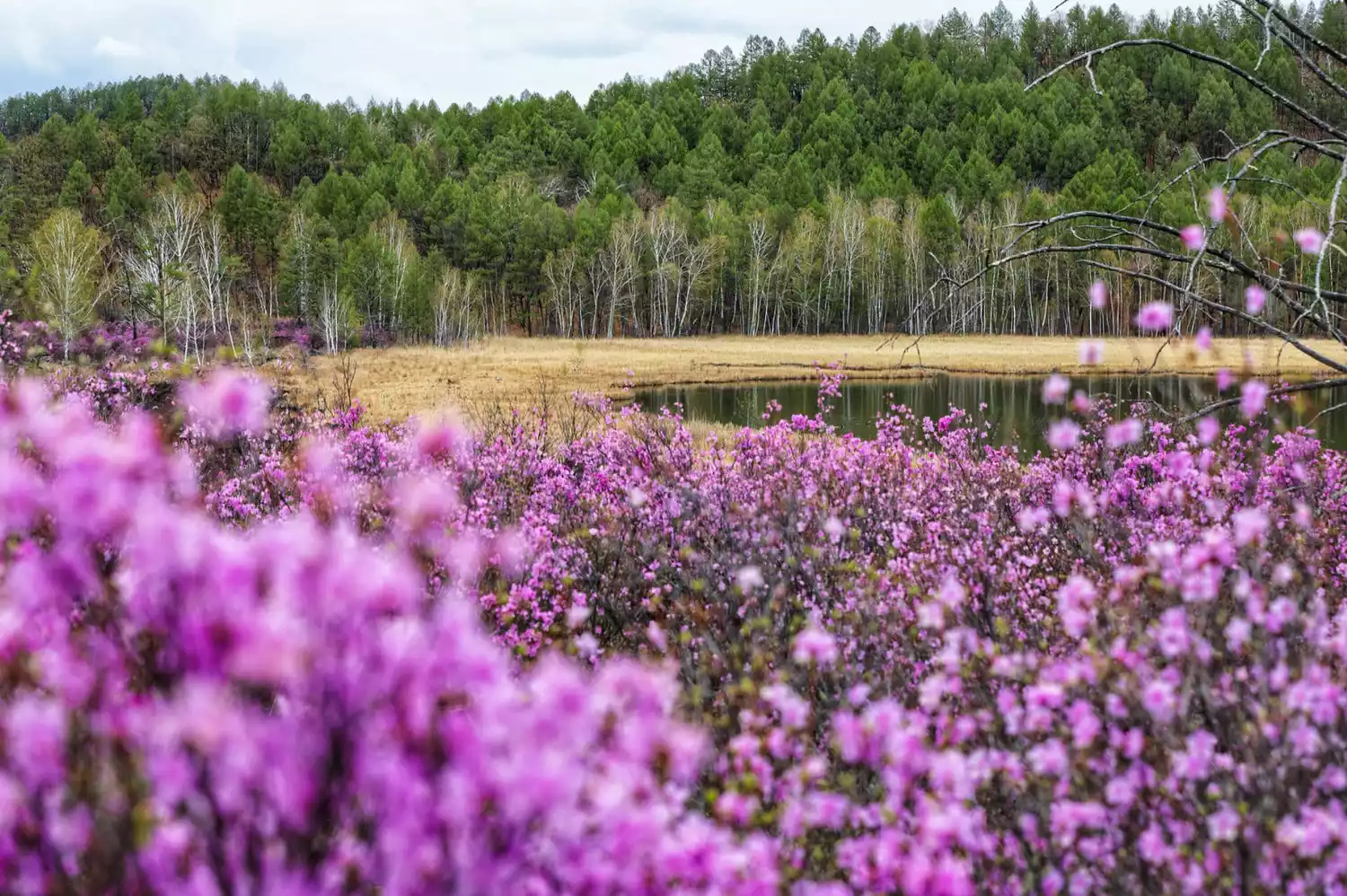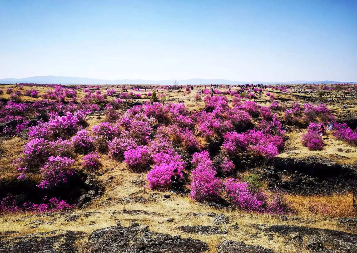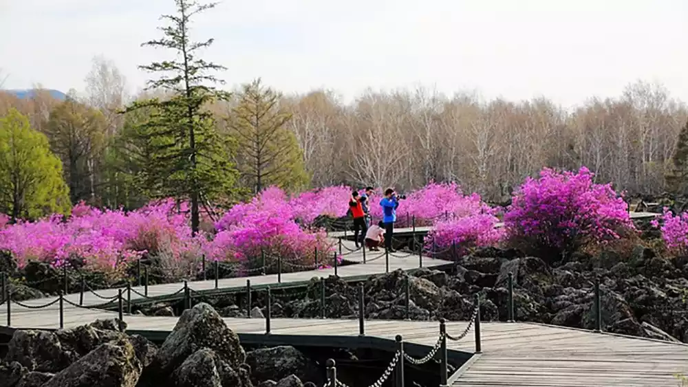 Rhododendrons are found throughout the north, growing in the Greater and Lesser Khingan Mountains and along the shores of volcanic lakes. While all azaleas are rhododendrons, the diverse vegetation and scenery create distinct azalea seas. The Rhododendrons of Khingan typically bloom around May Day and continue to bloom until mid-to-late May, so it's crucial to understand the flowering period and travel strategies for each region.