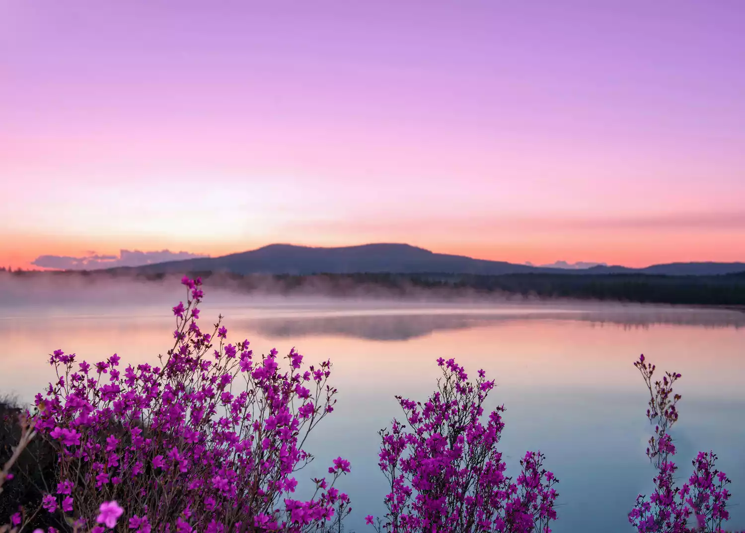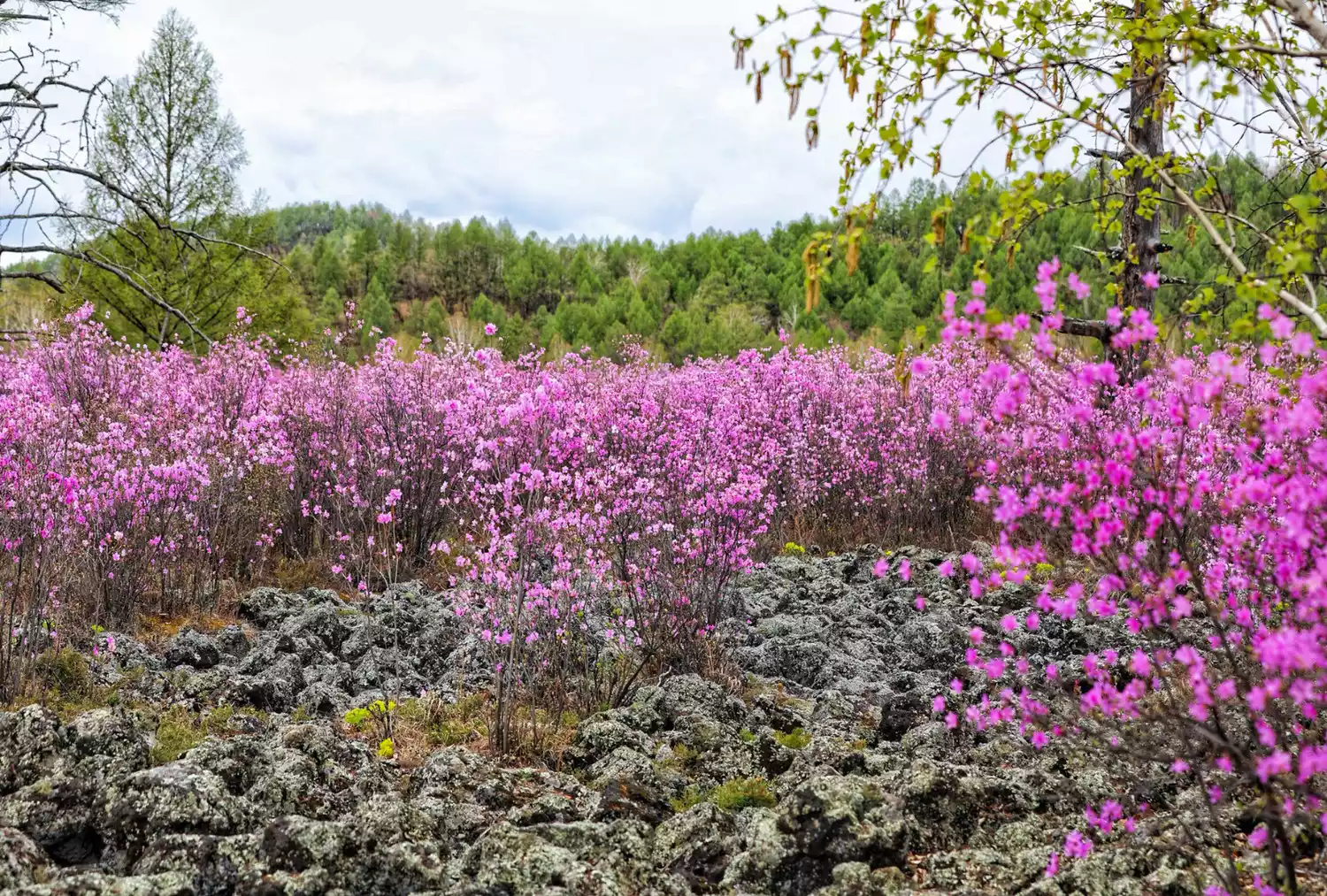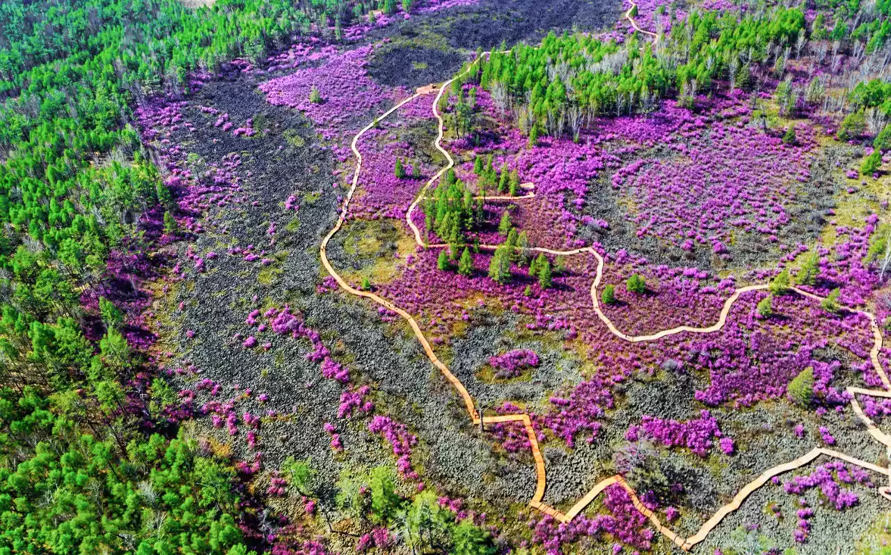 Rhododendrons are found throughout the north, growing in the Greater and Lesser Khingan Mountains and along the shores of volcanic lakes. While all azaleas are rhododendrons, the diverse vegetation and scenery create distinct azalea seas. The Rhododendrons of Khingan typically bloom around May Day and continue to bloom until mid-to-late May, so it's crucial to understand the flowering period and travel strategies for each region.