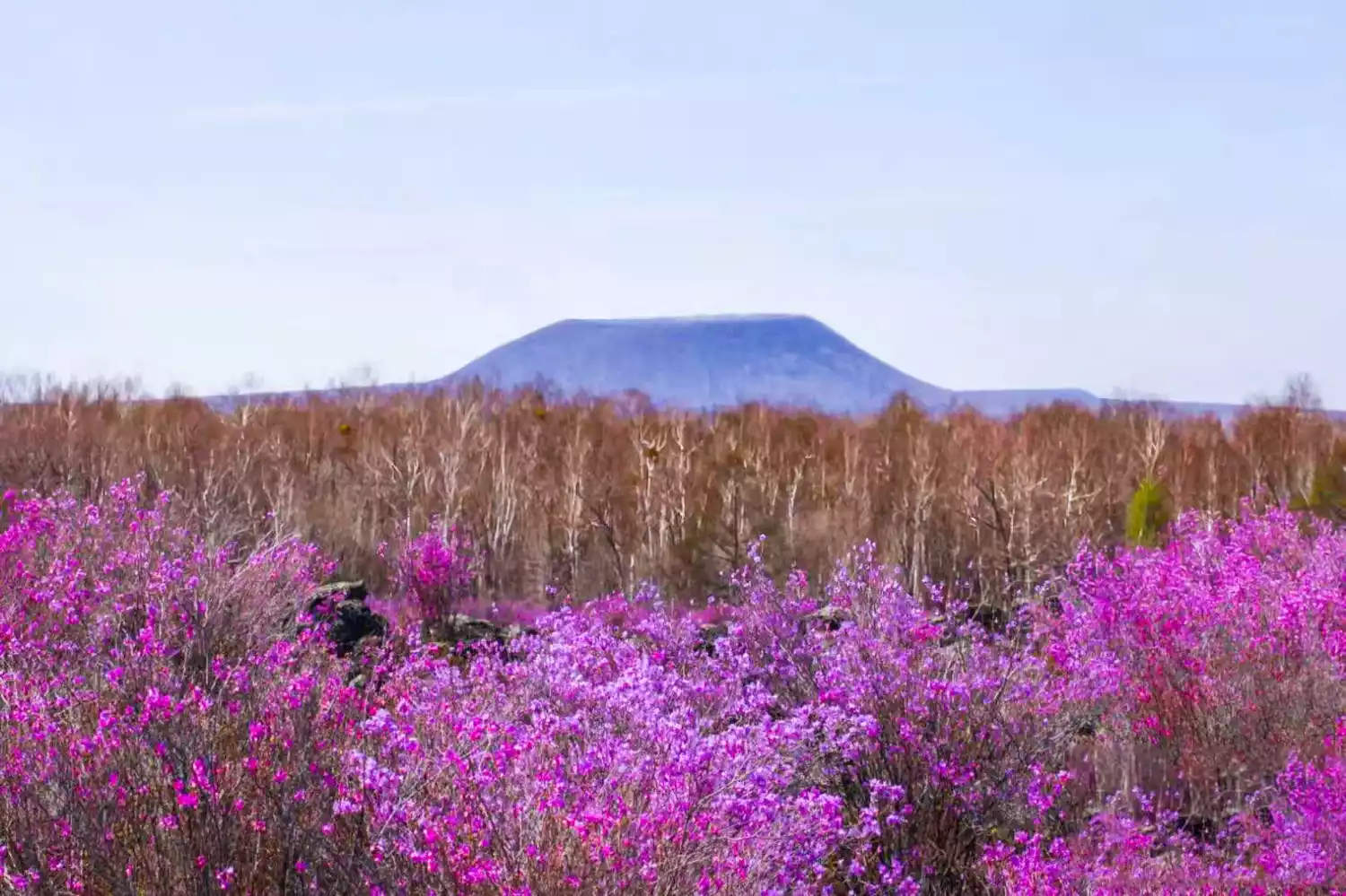 There are two good places to see volcanic rhododendrons in Wudalianchi. One is the famous Longmen Stone Village scenic spot, and the other is the volcanic lava plateau of Dongjiaodebu Mountain. This place has not been developed into a scenic spot and is a natural volcanic virgin land.