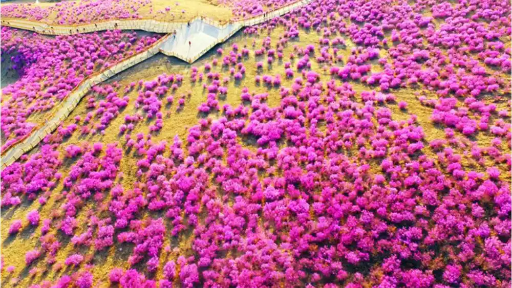 Located in the southwest of the Greater Khingan Range and serving as the southern gateway to Hulunbuir City, Zhalantun boasts striking seasonal changes. The frigid north winds, after crossing the Greater Khingan Range, leave the cold, icy snow on the windward side, earning Zhalantun, a city in southern Lingnan, the nickname "Jiangnan of the North" and "Suzhou and Hangzhou beyond the Great Wall." In May, as spring arrives and flowers bloom, azaleas rush to bloom, adding a vibrant lavender hue to the still-bleak, green mountains, signaling the start of tourist season. Therefore, the 2021 Zhalantun Azalea Festival will be held in April and May, inviting countless visitors to admire the vast expanse of azaleas.