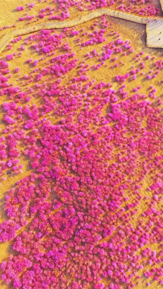 The plateau rises and falls, the lava gullies are ravines, and on the lava fields covering more than ten square kilometers, pink flowers casually flaunt their charm, spreading the splendor of the passing years. It is as if a huge plate holds up such a bunch of flowers. This is the unique romance of spring in Jingbo Shalan.