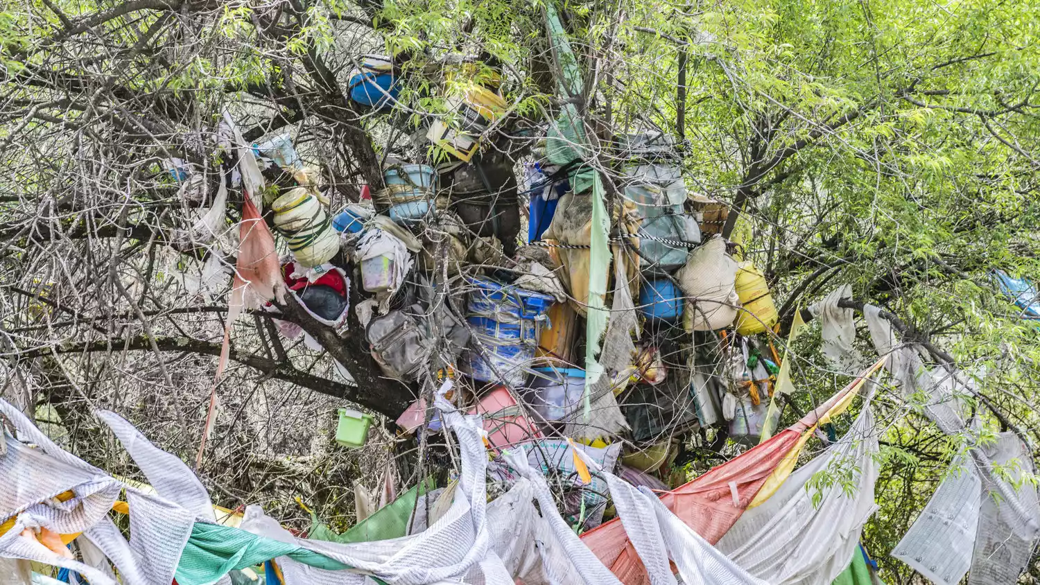 In Gaiyu Township, Baiyu County, the ancient custom of tree burial persists. When a child under thirteen dies, the locals curl them up in a fetal position, place them in a container, and hang them from a sturdy tree. The location for tree burials is very strict, often at a T-junction or crossroads.