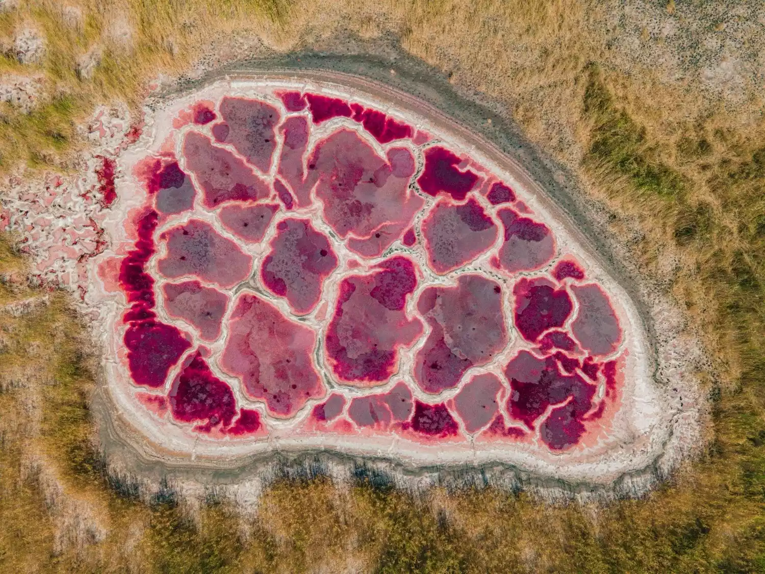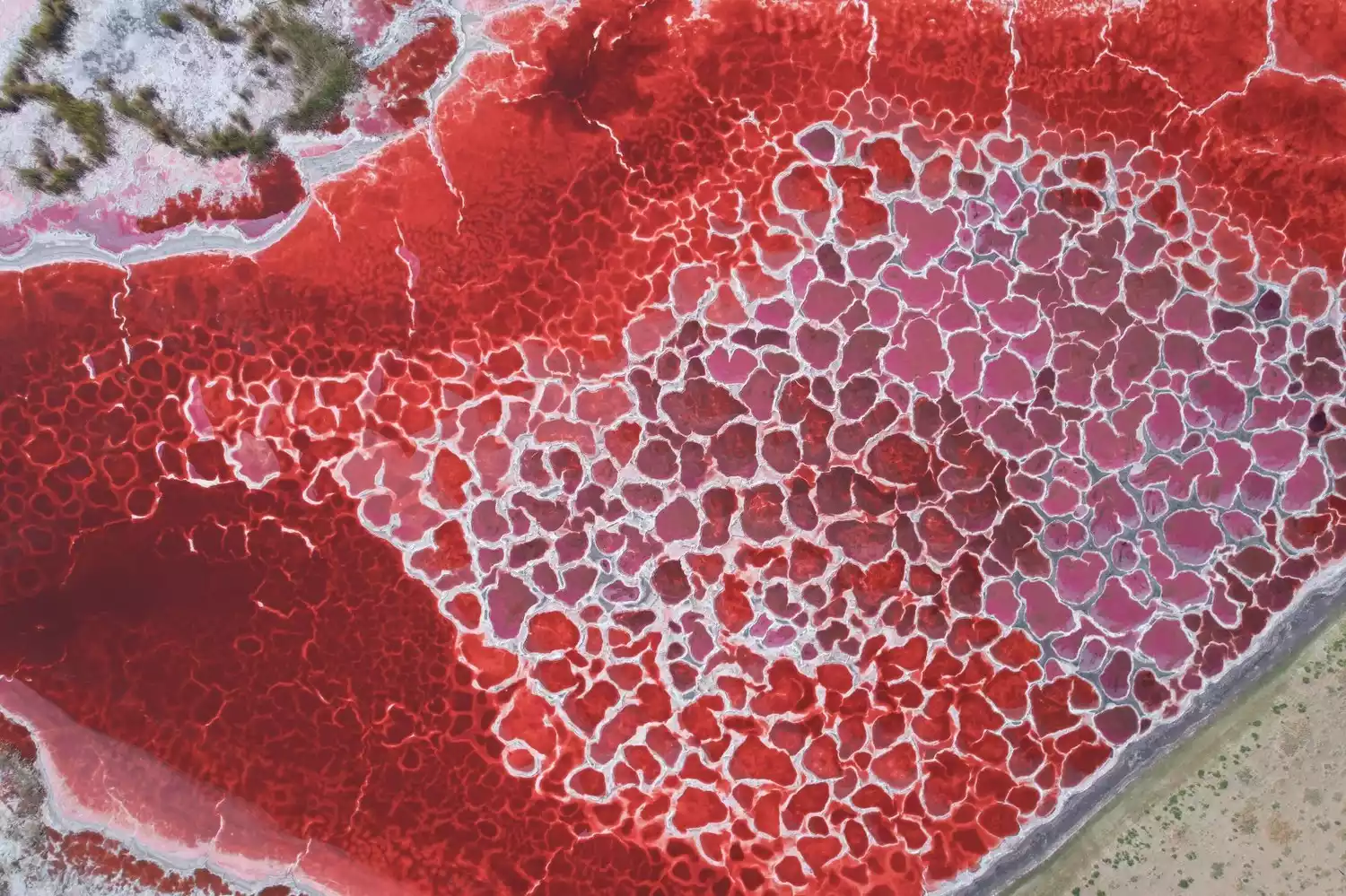 Everyone is probably familiar with this, and when visiting Ningxia, most people will choose to visit the Tengger Desert. Not only is there an endless desert, but there are also many naturally formed lakes. In 2021, people discovered a stunning red lake in the desert—Ulan Lake, which quickly became a popular tourist destination. Looking down from the sky at the bright red lake and the heart-shaped lake surface, it is known as the "Heart of the Earth."