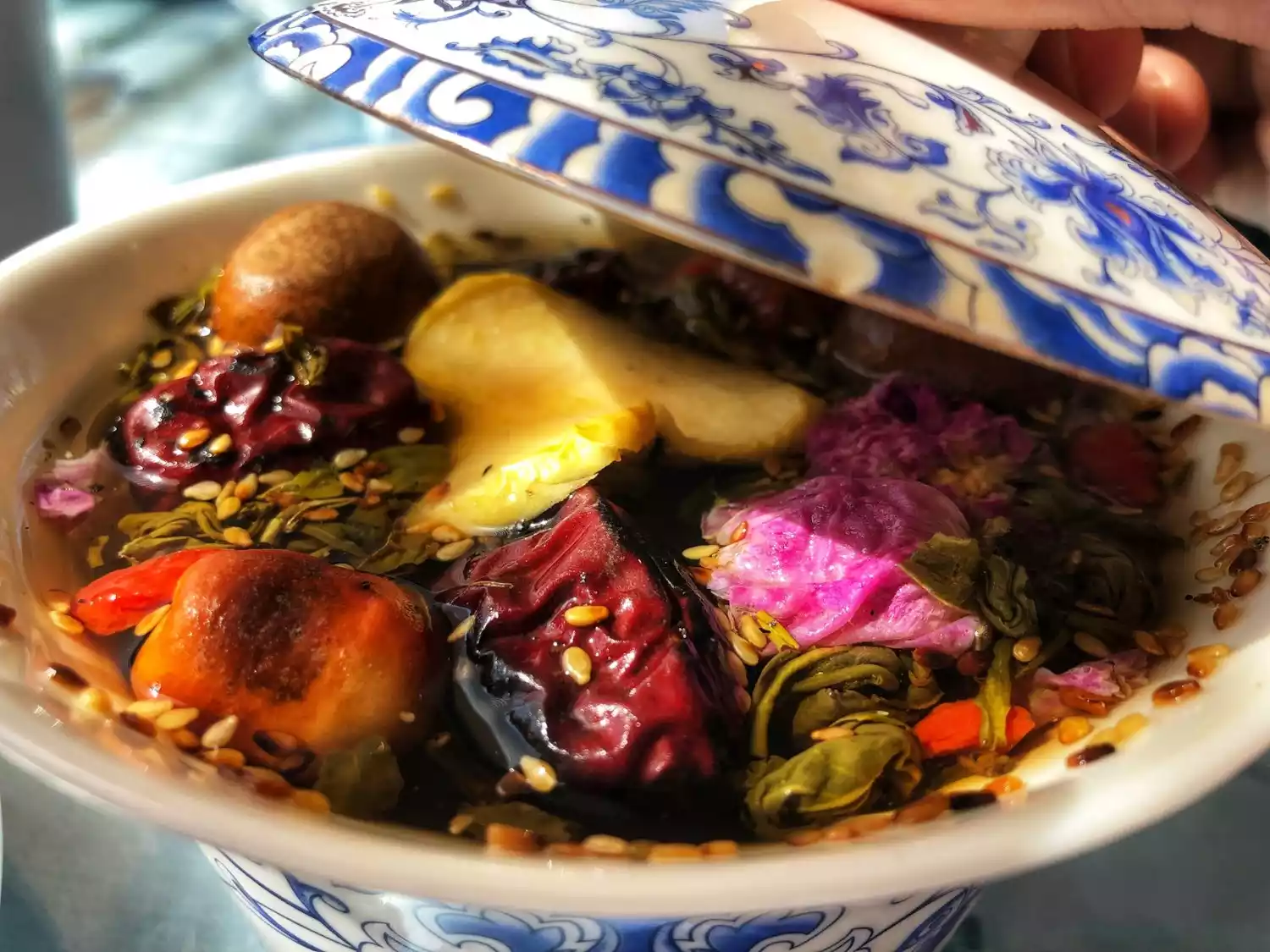 Eight Treasure Tea is a representative of Ningxia's intangible cultural heritage. Optimistic and relaxed, the Ningxia people choose to rise in the morning with a leisurely cup of steaming hot Eight Treasure Tea, officially starting their day. The diverse Eight Treasure Tea recipes are also the hallmark of each morning tea beef noodle restaurant's unique style. A cup is a must-try when visiting Ningxia.