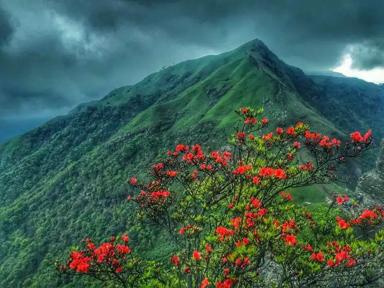 Tanggong Mountain is 1,130 meters above sea level. The entire route is about 11 kilometers long, with a cumulative climb of about 1,000 meters. There are large areas of naturally grown alpine rhododendrons. Starting from April every year, more than 100 acres of rhododendrons will continue to bloom for more than a month. From a distance, it looks like a huge wreath worn on Tanggong Mountain.