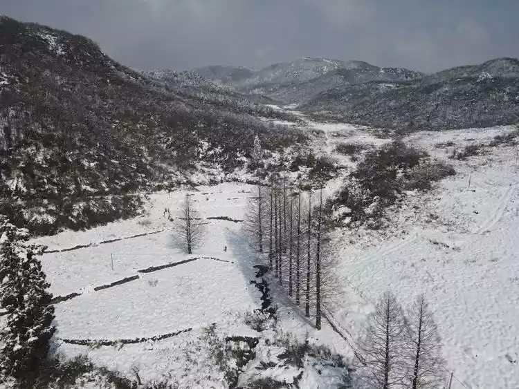 Daochangping, also known as Laoling, was a major transportation route between Zhejiang and Anhui provinces in ancient times. During the Three Kingdoms period, due to the constant disputes between Wu and Wei, a pass was built here, 15 feet high and 8 feet wide. It was heavily guarded and equipped with a lookout tower and a parade platform, now abandoned. This is Huanghua Pass. At an altitude of 1,000 meters, there is an open area of over 4,000 mu (approximately 1,000 mu). The entire open area slopes to the south, and the flat land and surrounding ridges form a giant "chair", a rare sight. The route is 10 kilometers long, with a cumulative climb of about 700 meters, making it a perfect place to enjoy rime and snow in winter.