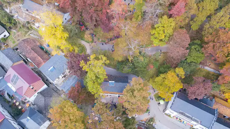 Zhinan Village, nestled on the banks of the Nantiaoxi River at the source of Taihu Lake in Lin'an, sits nearly 600 meters above sea level and boasts a history stretching back thousands of years. With over 470 mu (approximately 1,000 hectares) of terraced fields dotting the village, it's a photography enthusiast's paradise and is hailed by the outdoor community as one of the most beautiful ancient villages in East China. At the end of October, the rice paddies turn golden, and the village's ginkgo and red maple trees are tinged with autumnal colors. The golden ginkgo and fiery red maple trees are a must-see for photography enthusiasts!