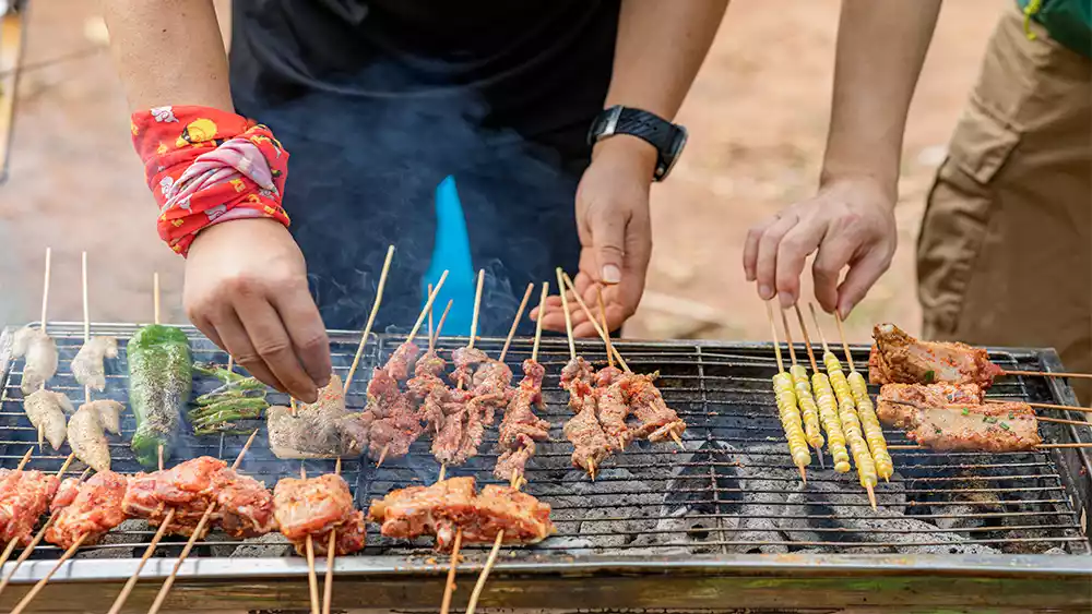 We made a fire, burned charcoal, set up the grill, prepared ingredients, and had a BBQ in the mountains, with ice-cold beer and cold drinks, and had a great time!
