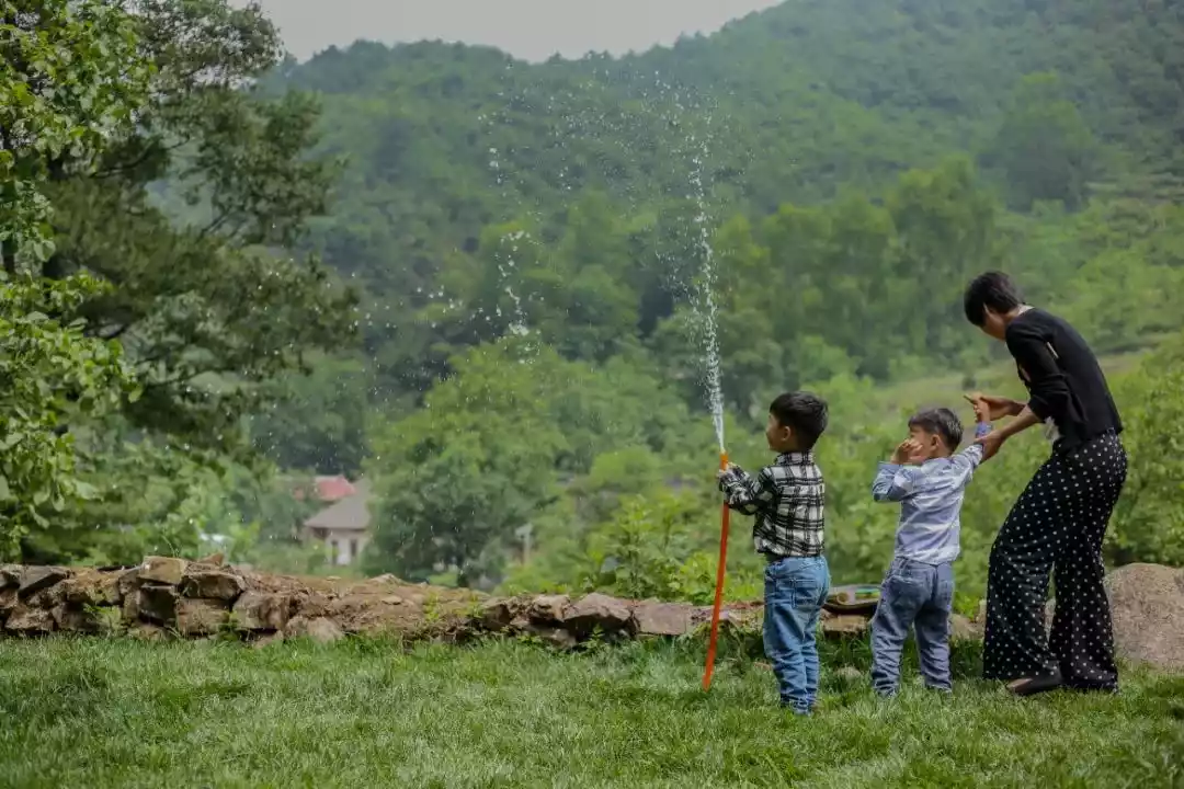 Taking off their shoes and rolling up their trouser legs, they carefully planted the small seedlings into the paddy fields. Holding the seedlings in their left hands, they quickly separated and planted them with their right hands. Against the backdrop of green mountains and clear waters, the paddy fields became a "playing field", a beautiful farming scene.