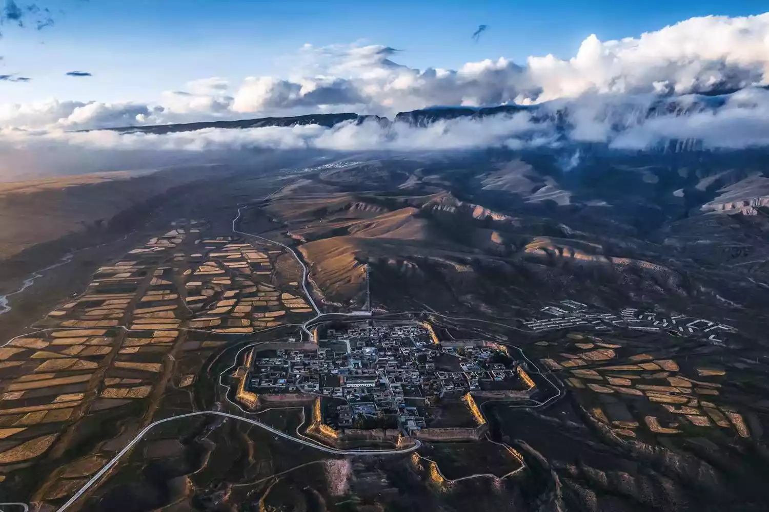 The eastern part of the Gangga Grassland boasts a unique ancient city. Breaking free from the constraints of round or square shapes, it stands out with its own unique style. This is the historically renowned Bajiao Ancient City. Bearing the marks of the rise and fall of dynasties, Bajiao Ancient City served as a strategic point for transportation between Gansu and Qinghai, and a key military stronghold fiercely contested by successive political regimes. Even today, it preserves cultural relics from various eras, offering both historical and scenic value.
