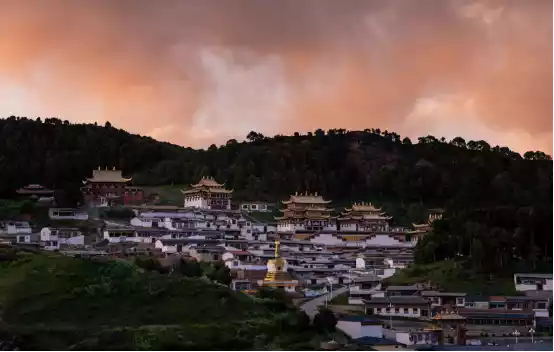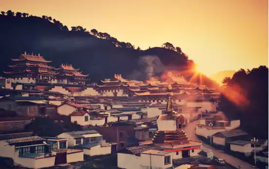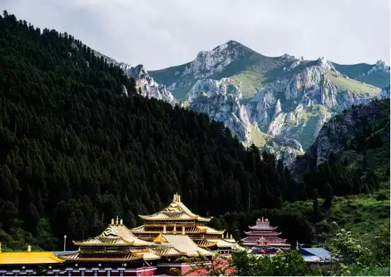 The unique terrain, with mountains at its back and the Daxia River running through it, offers a panoramic view of magnificent golden pavilions and palaces, second only to the Potala Palace in size, creating a peaceful and mysterious scene. For Buddhists, this is a sacred Pure Land where all doubts about spiritual practice can be resolved and enlightened.