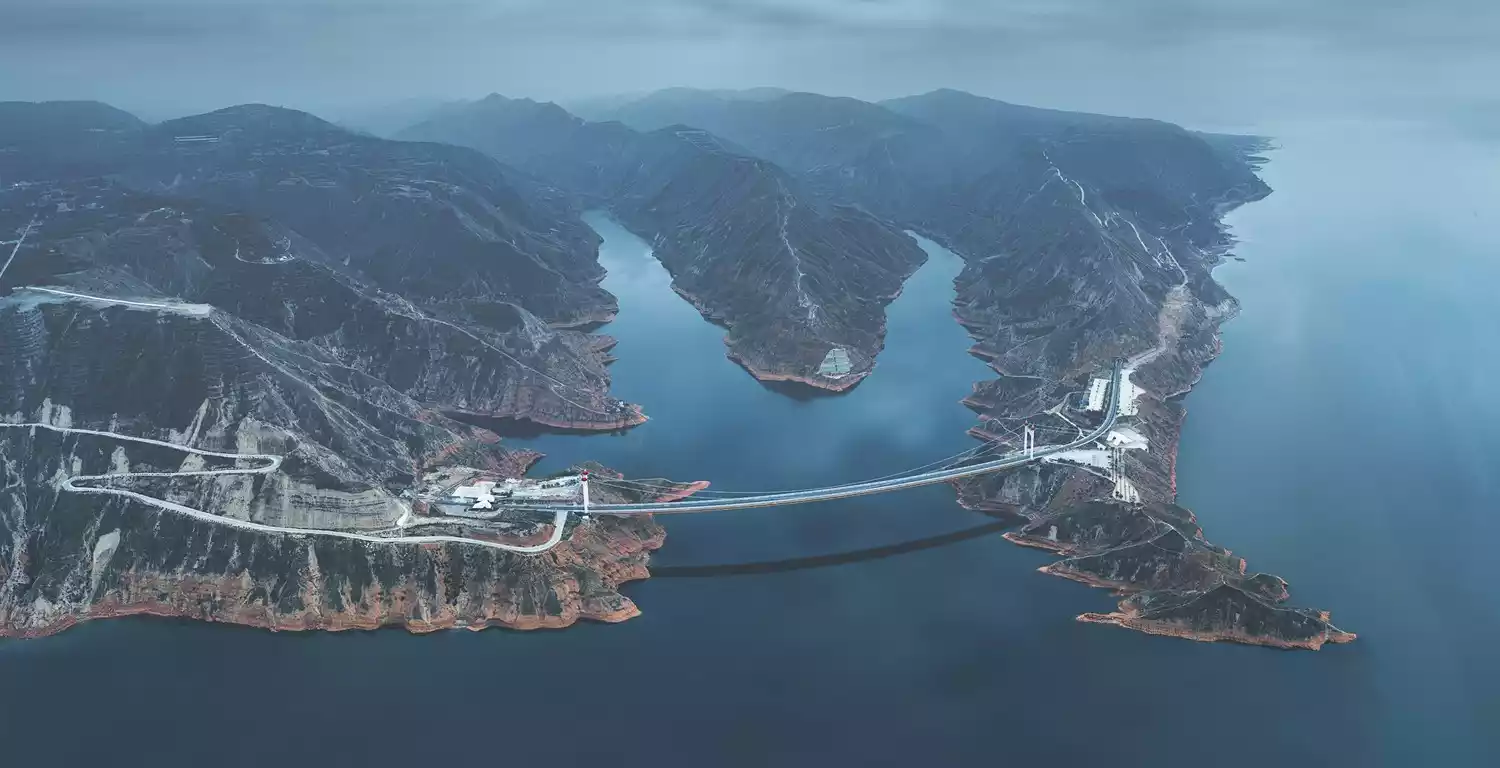 The Liujiaxia Bridge, connecting Lanzhou and Linxia, spans the Yellow River with a towering, slender presence. As the largest span bridge in Northwest China, it boasts the narrowest width among bridges of its size. It is the first bridge to utilize concrete-filled steel tube structures (CFSTs) as suspension bridge towers, boasting the world's largest diameters. The towers' shape and tower-centered landscape design embody strong ethnic cultural characteristics. These unique conditions, ingenious design, and other topographical and geological factors contribute to the bridge's distinctive character.
