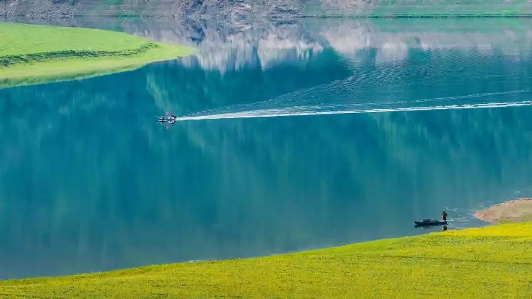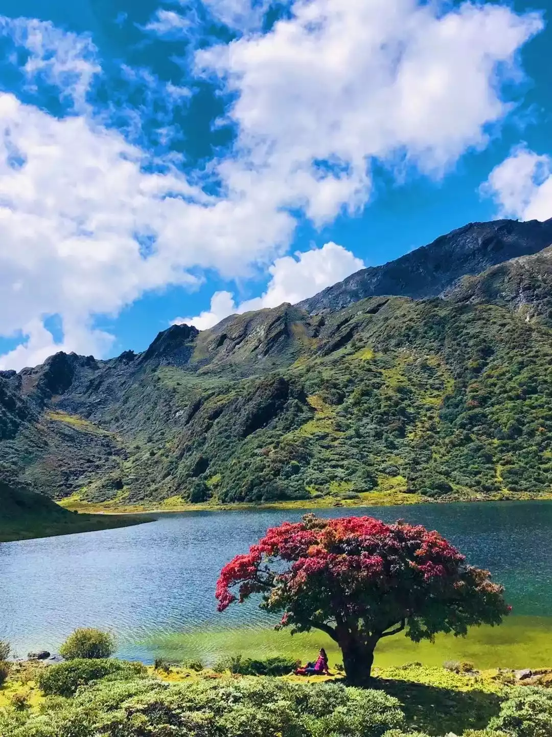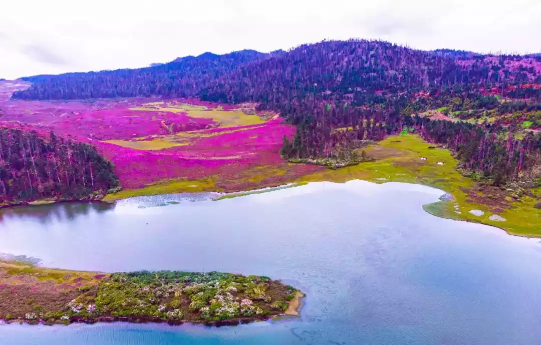 Every early summer in June, the holy lake and the foot of the mountain are flooded with flowers, and the lake is blue. Although there are not flowers blooming everywhere like Nianbao Yuze, there are still green grass and dotted with flowers, just like a girl who is ignorant of the world, pure and beautiful.