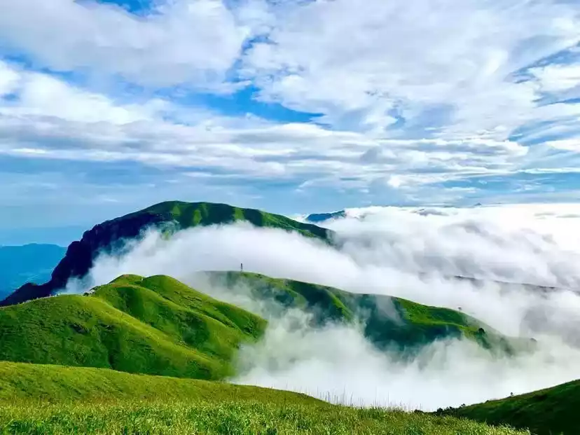 If you were born in a southern city, the tranquil green mountains in the distance, nestled between buildings, will always evoke a desire to walk and explore the mountains. Here are grasslands, seas of clouds, and a green gem that has fallen into the mortal world.