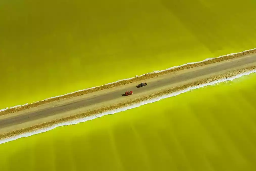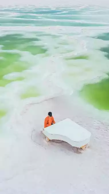 The vast expanse of transparent green is truly refreshing, and the white salt layer at the bottom of the lake makes the water even more transparent.