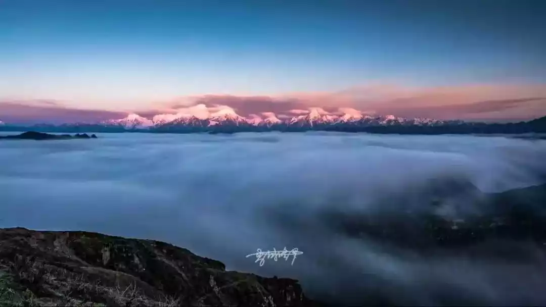 Standing on Niubei Mountain, you can have a panoramic view of the famous mountains and ridges of Shu, including Gongga Mountain, Siguniang Mountain, Emei Mountain, Erlang Mountain, Jiajin Mountain, etc., and they all become exquisite bonsai when you look up.