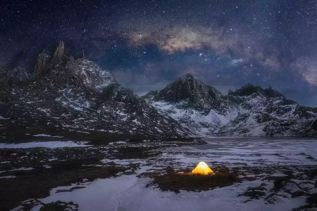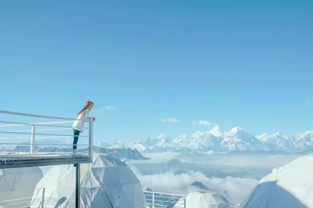 Stay at the Niubei Mountain Star Camp. When the weather is fine, the Milky Way Arch Bridge is clearly visible, facing the snow-capped mountains and sea of clouds. You can just lie down and enjoy the view!