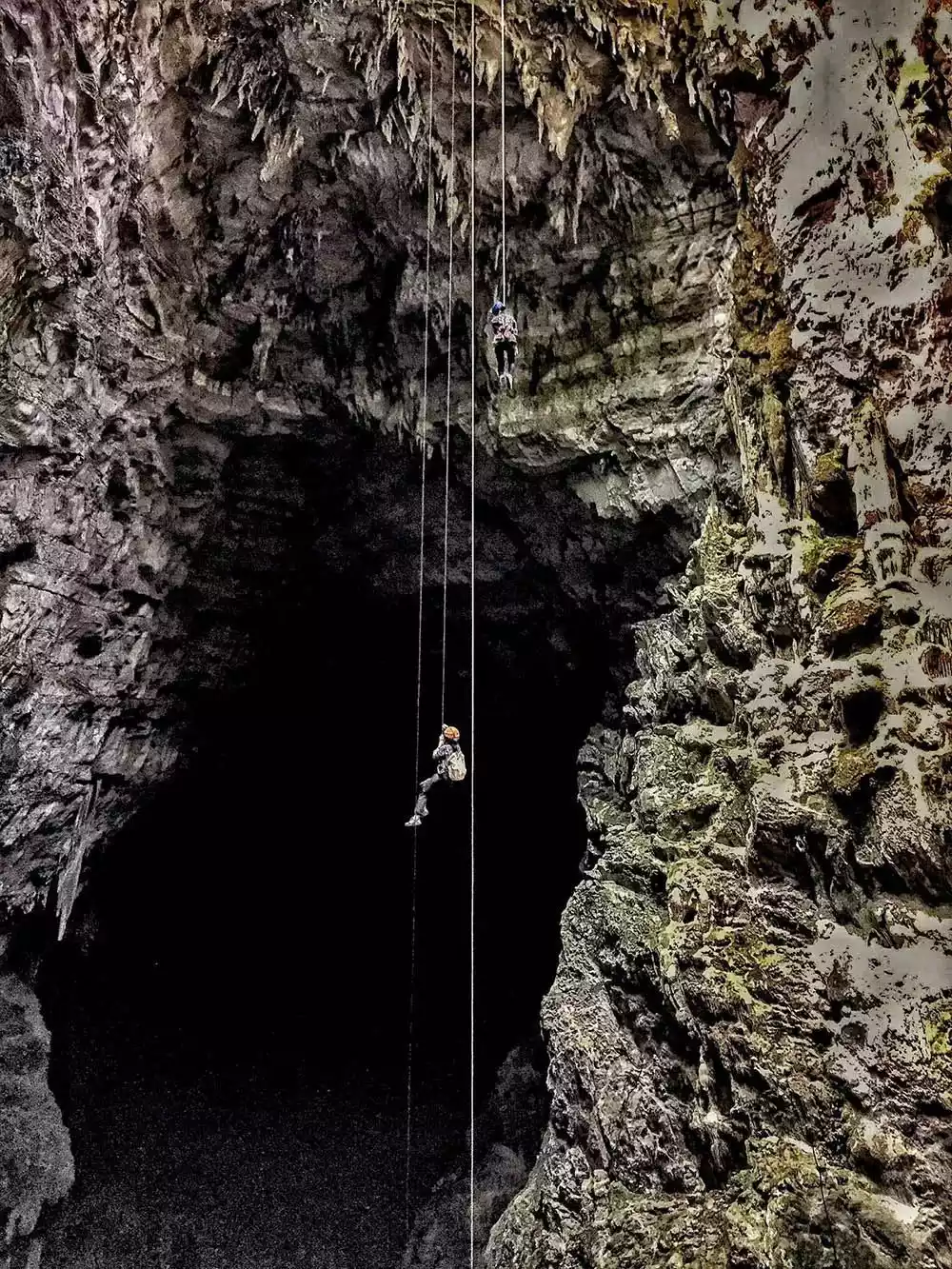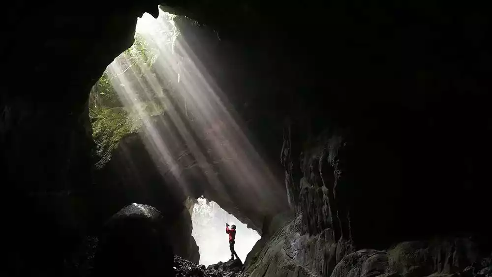 Caving is a popular outdoor activity in Guangxi. The temperature inside the caves remains constant at 19°C year-round, offering a comfortable outdoor experience with beautiful scenery and minimal crowds. Fengzidang, known as "One Cave, Three Skypits," is a cavernous structure connected by three windows. Millennia of erosion and crustal movement have eroded the underground river, causing it to collapse and form three skylights.