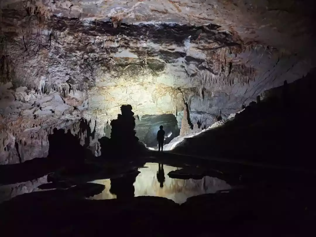 Xiongjia Cave is the most essential section of the five-year Journey to the Center of the Earth National Hiking Competition. The cave is filled with quartz sand crystals, and when you shine a headlamp on it, you can see dots of light, like a sky full of stars.