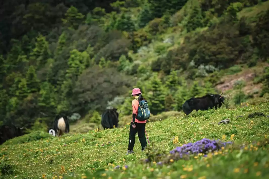 In summer, the wild mushrooms and agarics all over the mountains, the nameless small flowers on the plateau, and the mist-shrouded Meili Snow Mountain add a lush and vibrant atmosphere to Yubeng.