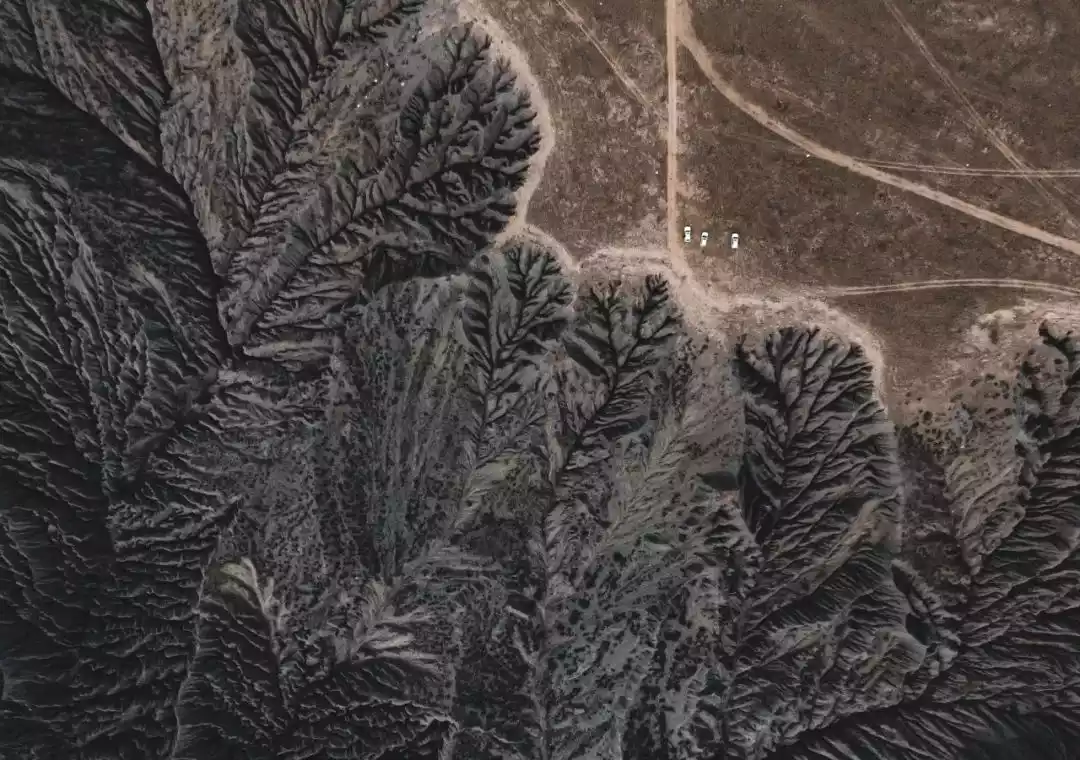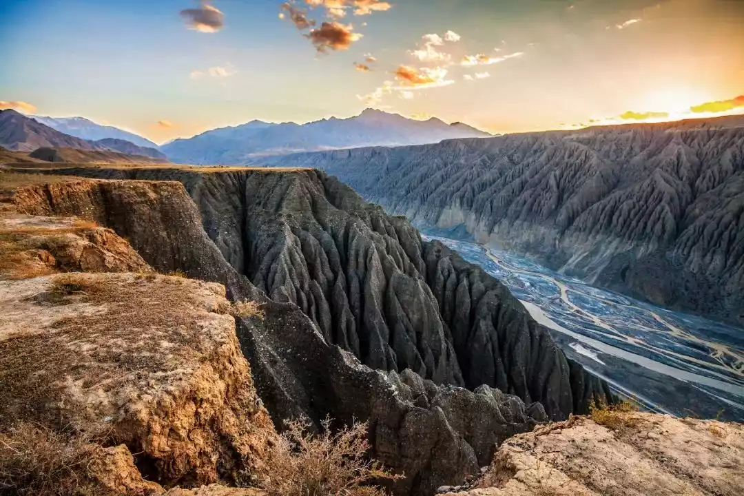 The hundred-meter-deep canyon cliffs have been carved out by the snow and water from the Tianshan Mountains over the years, forming crisscrossing gullies and revealing magical patterns like leaf veins, which are awe-inspiring and awe-inspiring.