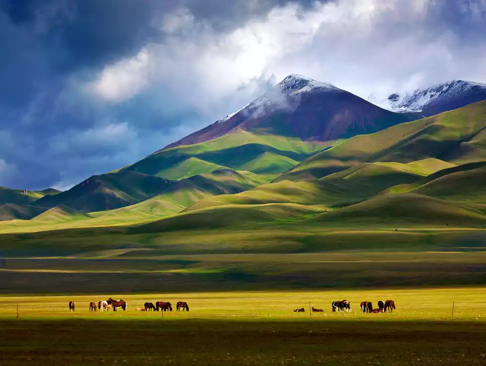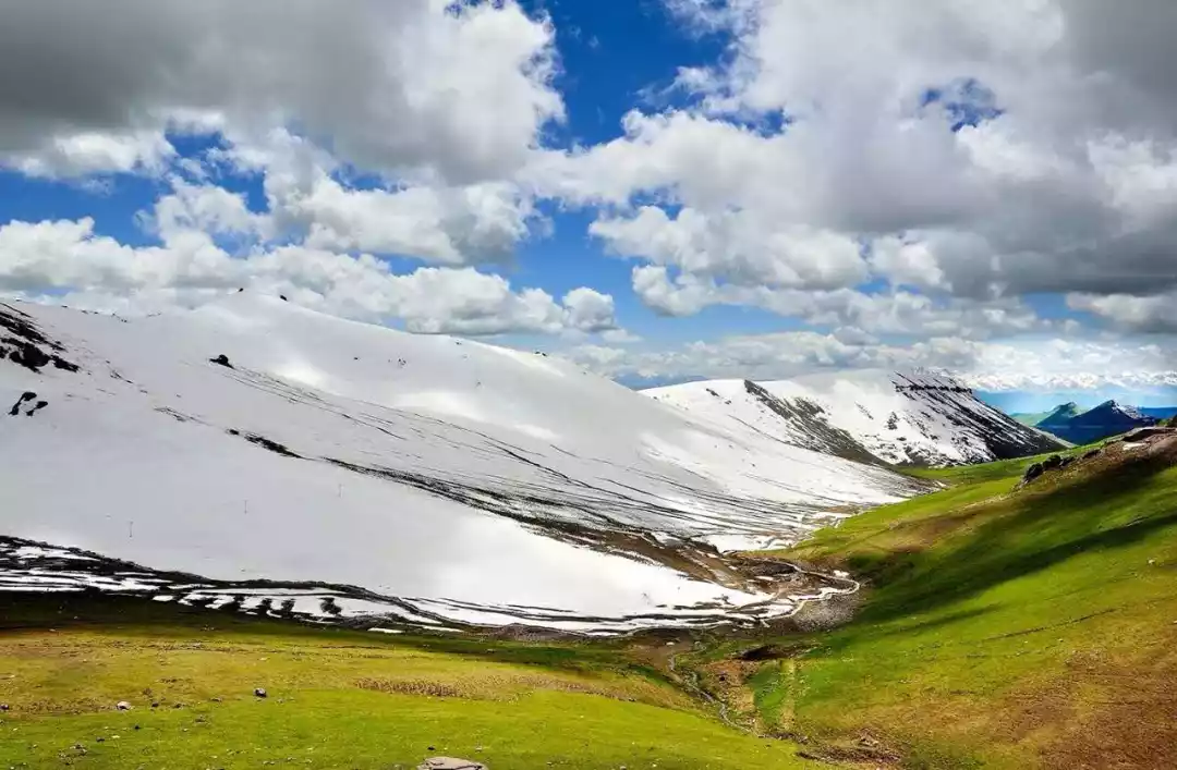 A hundred miles west of Qorma, the grassland is fertile and the scenery is picturesque. Under the blue sky and white clouds, the Tangbula grassland looks as beautiful as an oil painting.