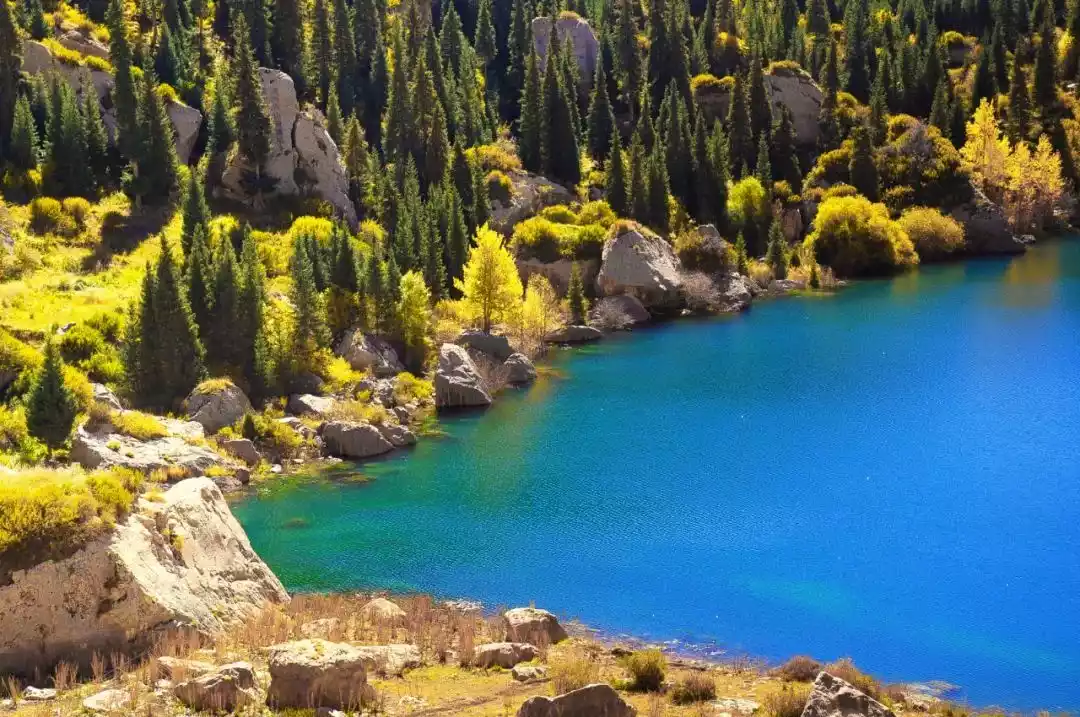The jewel-like Big and Small Dragon Ponds are located deep in the mountains. The emerald green lake is close to the road, and on the other side are green mountains. The beautiful scenery is like a surprise for travelers.