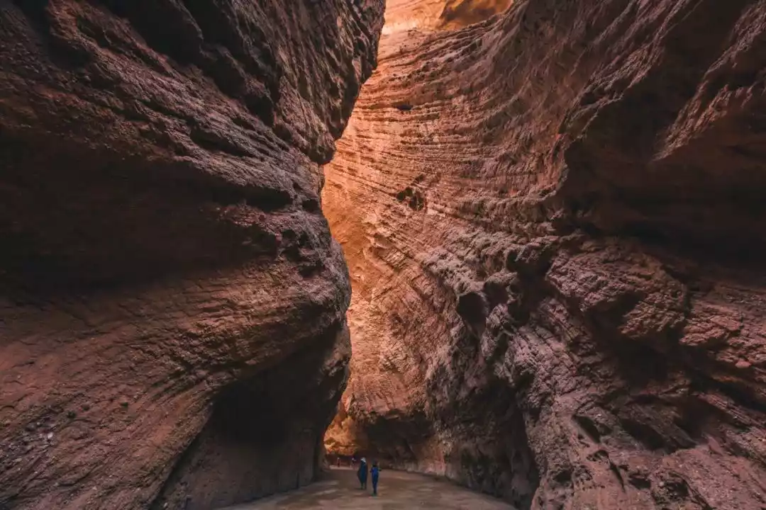 The reddish-brown Kuqa Grand Canyon was formed through billions of years of wind and rain erosion. The peaks are towering and the canyons are winding. The light shining through the cracks in the canyon is very shocking!