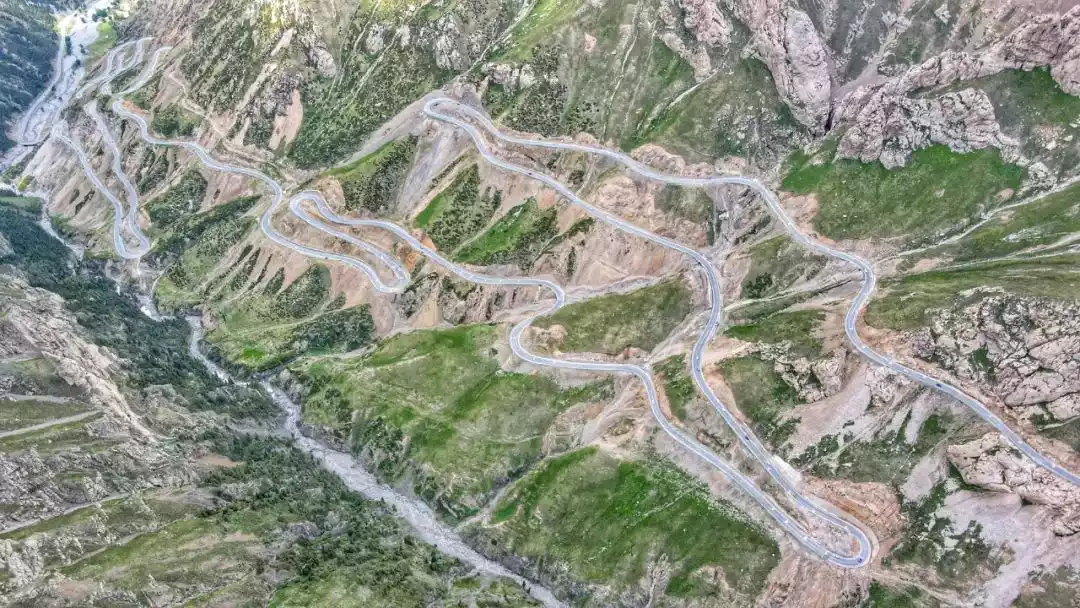 The northern section reaches its highest point at 3,460 meters above sea level at Hashilegenda Pass. The winding mountain road winds its way up through deep valleys. After crossing the pass, the view opens up to a vast expanse of snow-capped mountains.