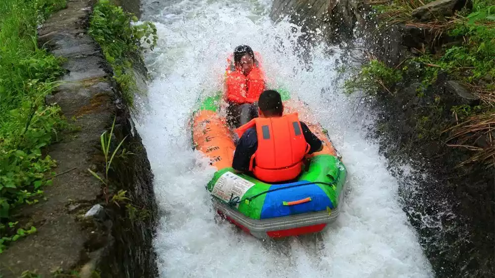 The Qinling Canyon Rafting is 8 kilometers long with a drop of more than two meters. You slide directly down the water. The thrill will make you scream all the way!