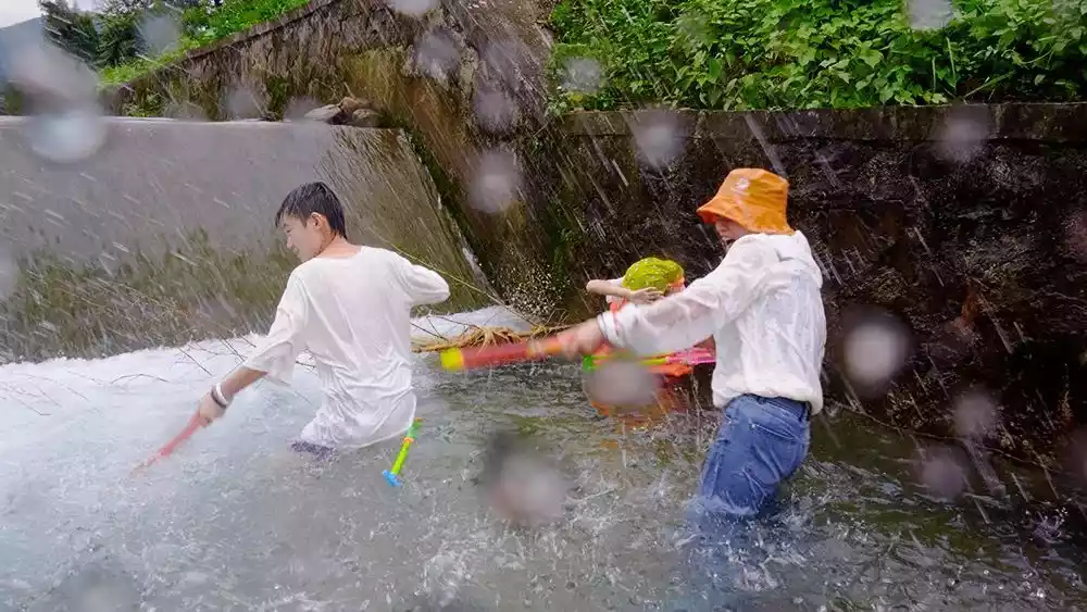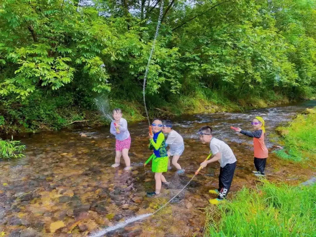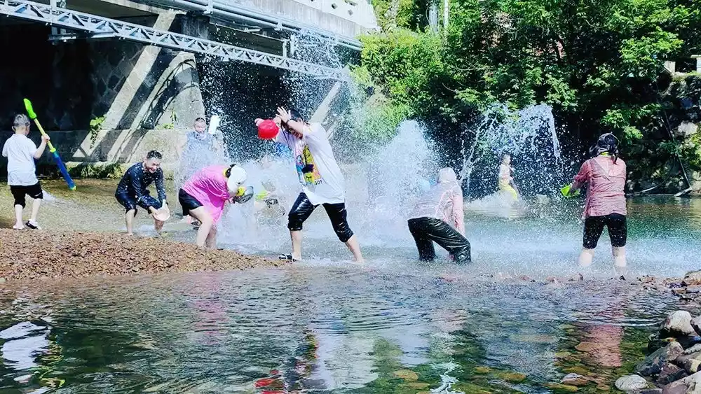 In the midsummer, we brought cool water play equipment and came to the stream in Dayi to start our water play battle!