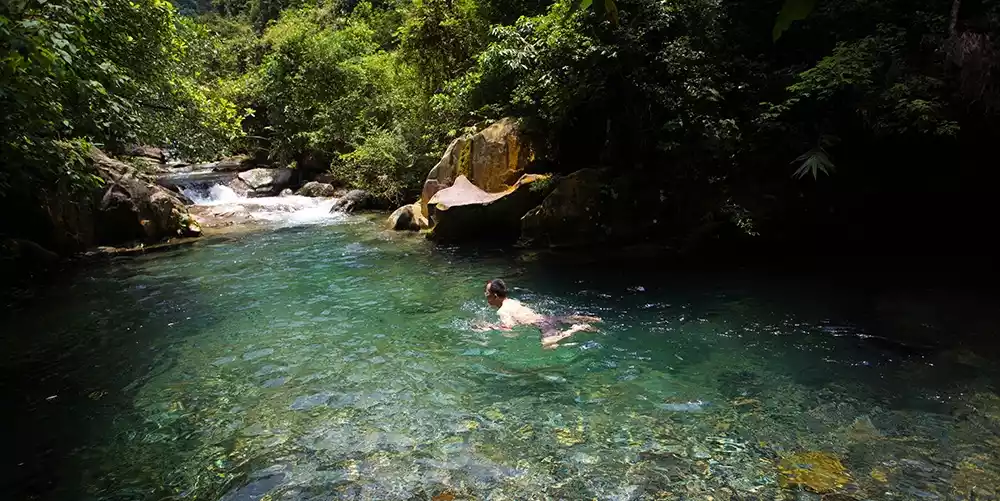 The rafting experience, with 19 bends and 10 rapids, takes about 1.5 hours. As the boat rushes down the river, winding back and forth, and when the water opens up and slows down, you can look up and see the lush greenery around you â what a delight!