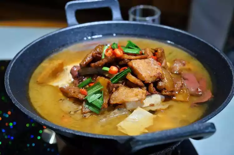 The ingredients used are very rich, with farm radish as the base, and fresh pork belly, pig blood and farm salted tofu are added and rolled into a pot. Finally, it is cooked on low heat in a blast stove. It has a unique taste when eaten while cooking.