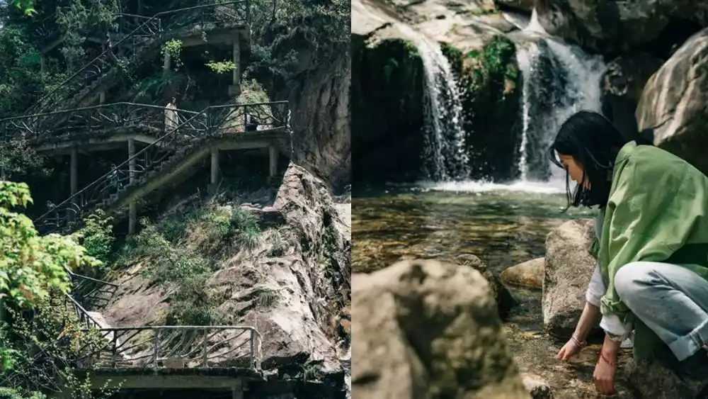 Hiking up the mountain, you will see lush greenery everywhere. You will pass by streams and waterfalls, walk on suspended plank roads, cross mountains and ridges, feel the howling mountain wind, and overlook the abyss. You will feel weightless, as if you are walking in the clouds.
