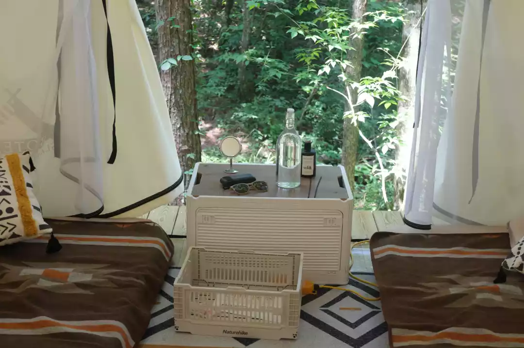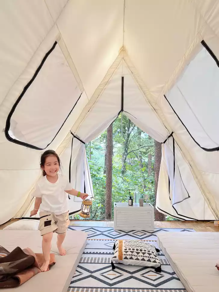 The campsite is equipped with modern restrooms that are regularly disinfected. Soft cotton-padded beds and Nordic-style, skin-friendly blankets create a homey atmosphere. The campsite is also staffed with a dedicated butler who is always available to respond to your needs.